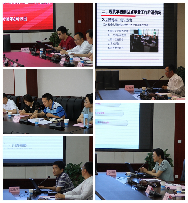 在会上,教务处、招生就业办公室、交通运输学院、电子信息学院、土木工程学院分别汇报了本院部现阶段现代学徒制试点工作进展情况及下一步工作安排。