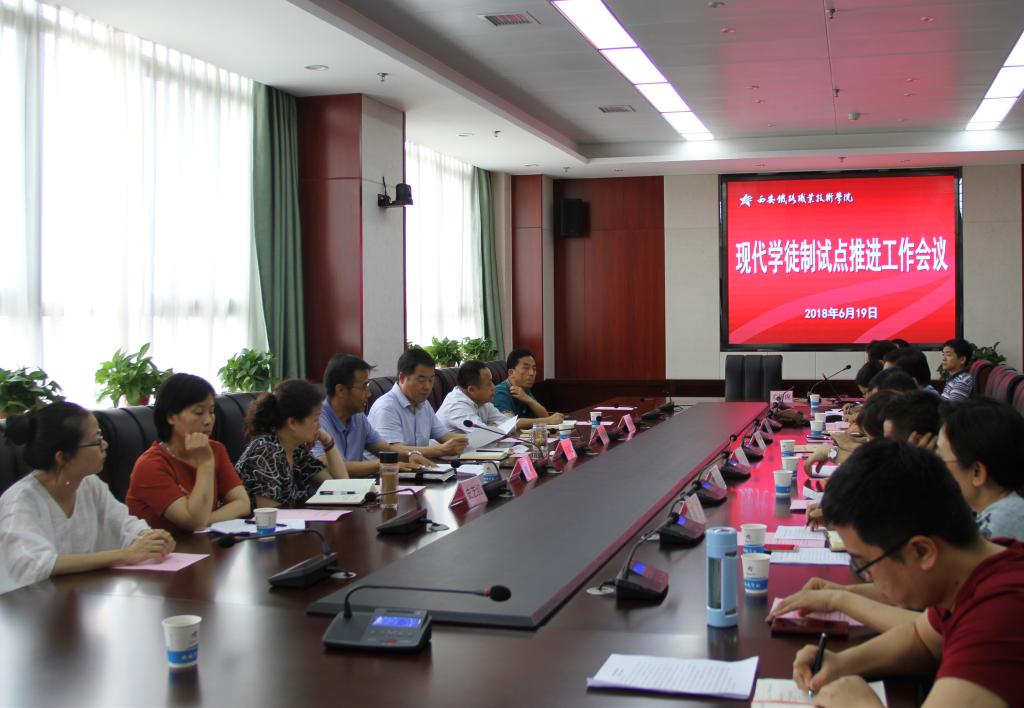 6月19日下午,学院现代学徒制试点推进工作会议在港务校区召开,学院副院长安学武、西安地铁运营分公司总经理刘峻峰出席会议,贝博官网教务处、招生就业办公室、交通运输学院、电子信息学院、土木工程学院负责人及相关工作人员参加会议。
