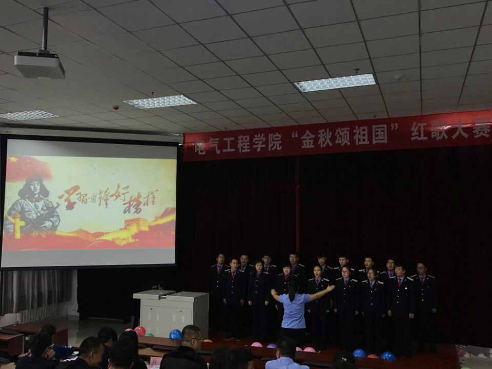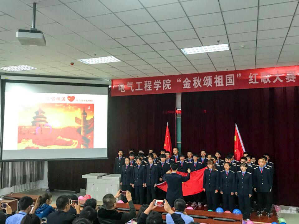 为迎接党的十九大胜利召开, 9 月 27 日 下午,学院电气工程学院在本院举办了“金秋颂祖国”班级红歌合唱大赛活动。