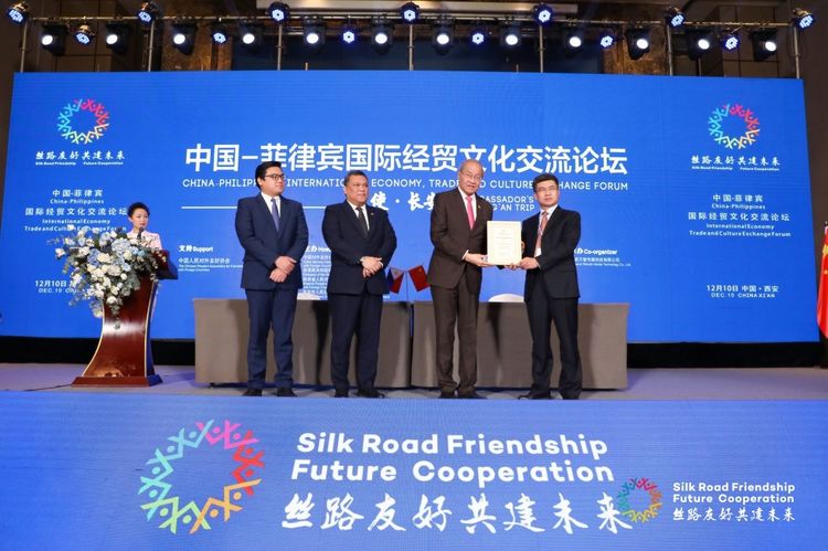 12月10日,中国-菲律宾国际经贸文化交流论坛在西安豪享来温德姆至尊酒店举行,陕西省副省长赵刚,西安市常务副市长玉苏甫江出席了论坛并致辞。学院院长赵春平、国际交流与合作处处长赵景民等参加了论坛活动。论坛期间,赵春平院长代表学院向菲律宾驻华大使何塞·圣地亚哥·罗马纳先生递交了合作意向书,表达了学院从境外分校建设、来华留学生培养及为菲方培训轨道交通师资、技术技能人才等方面推进与菲方的教育合作的意向。随后,罗马纳大使向学院颁发了感谢状,感谢学院为推动中菲职业教育合作所作的努力。
