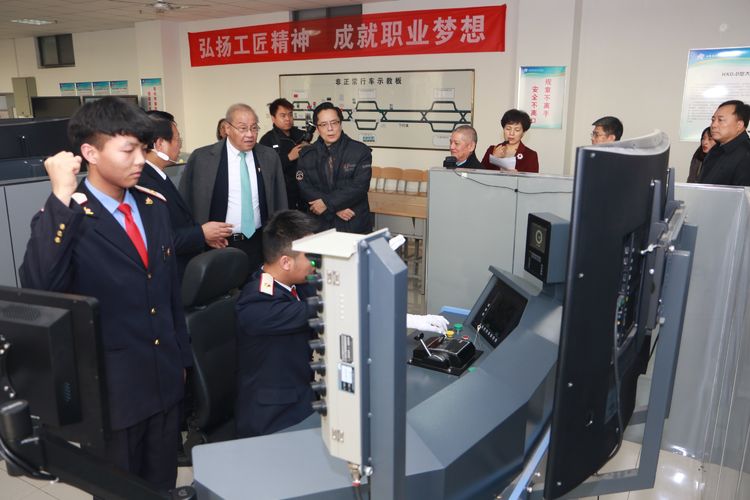 代表团参观了牵引动力学院实训室,罗马纳大使对学院的轨道交通专业建设和实训设备表示由衷赞赏,并亲身体验了动车组模拟驾驶。