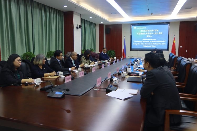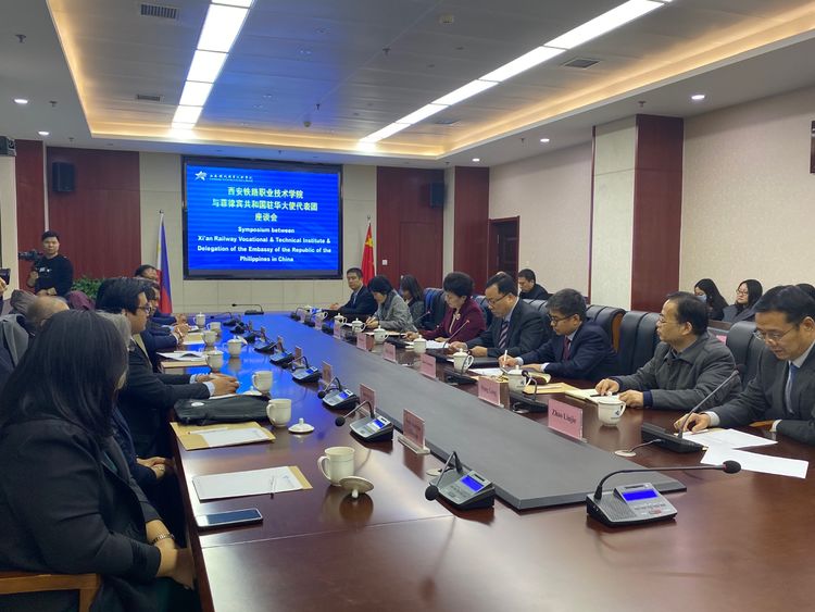 12月11日下午,罗马纳大使先生率代表团一行十人,在中国人民对外友好协会、陕西省人民对外友好协会、西安市委外办、西安市教育局等相关部门领导及中菲企业代表的陪同下,来贝博官网参观考察,并就中菲轨道交通专业领域的职业教育交流与合作展开洽谈。