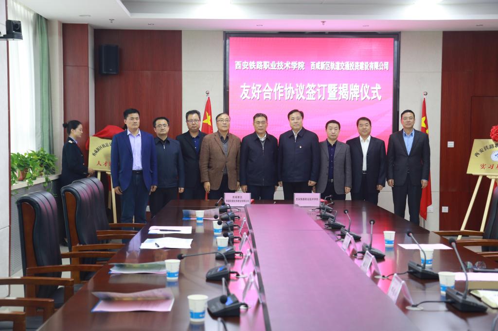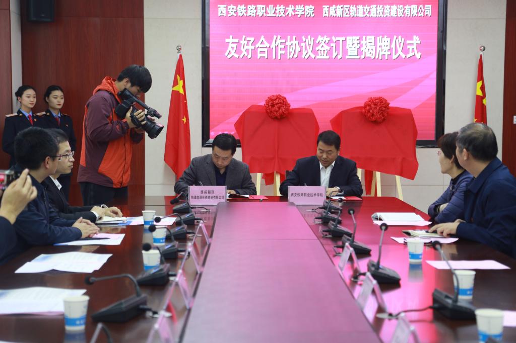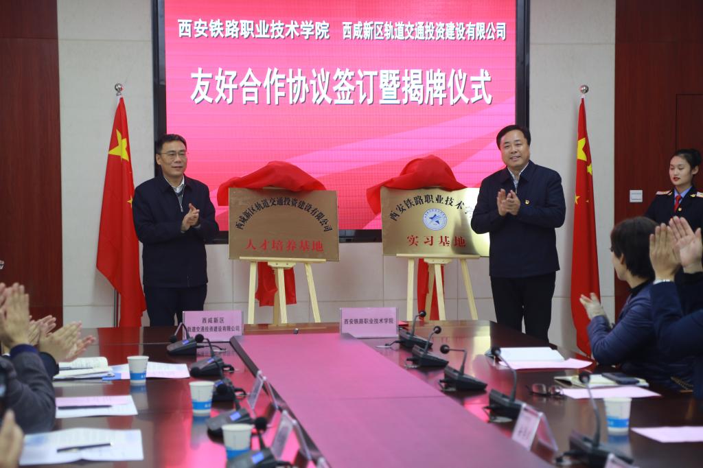 仪式在热烈而又欢快的气氛中进行。随后,在全场嘉宾及与会人员的共同见证下,张建军董事长与安学武副院长共同签署了校企合作友好协议,姚海军副主任与施利民书记为“西咸新区城市轨道交通人才培养基地”“ballBET贝博BB艾弗森实习基地”隆重揭牌。