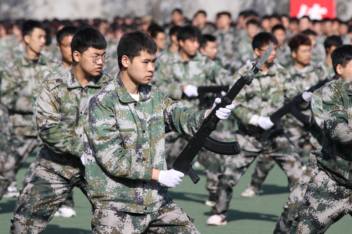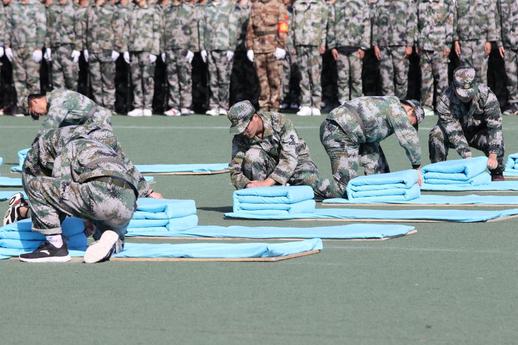 各营分别进行了内务展示、队列表演、交通手势、刺杀操、捕俘操、擒敌拳及战术基础动作表演,训练场上女生们欢快优美的手语操、男生们生龙活虎的军体拳,充分抒发了新生爱国荣校的情怀,洋溢着对美好未来的无限向往和坚定信心,赢得了观众席上阵阵喝彩。
