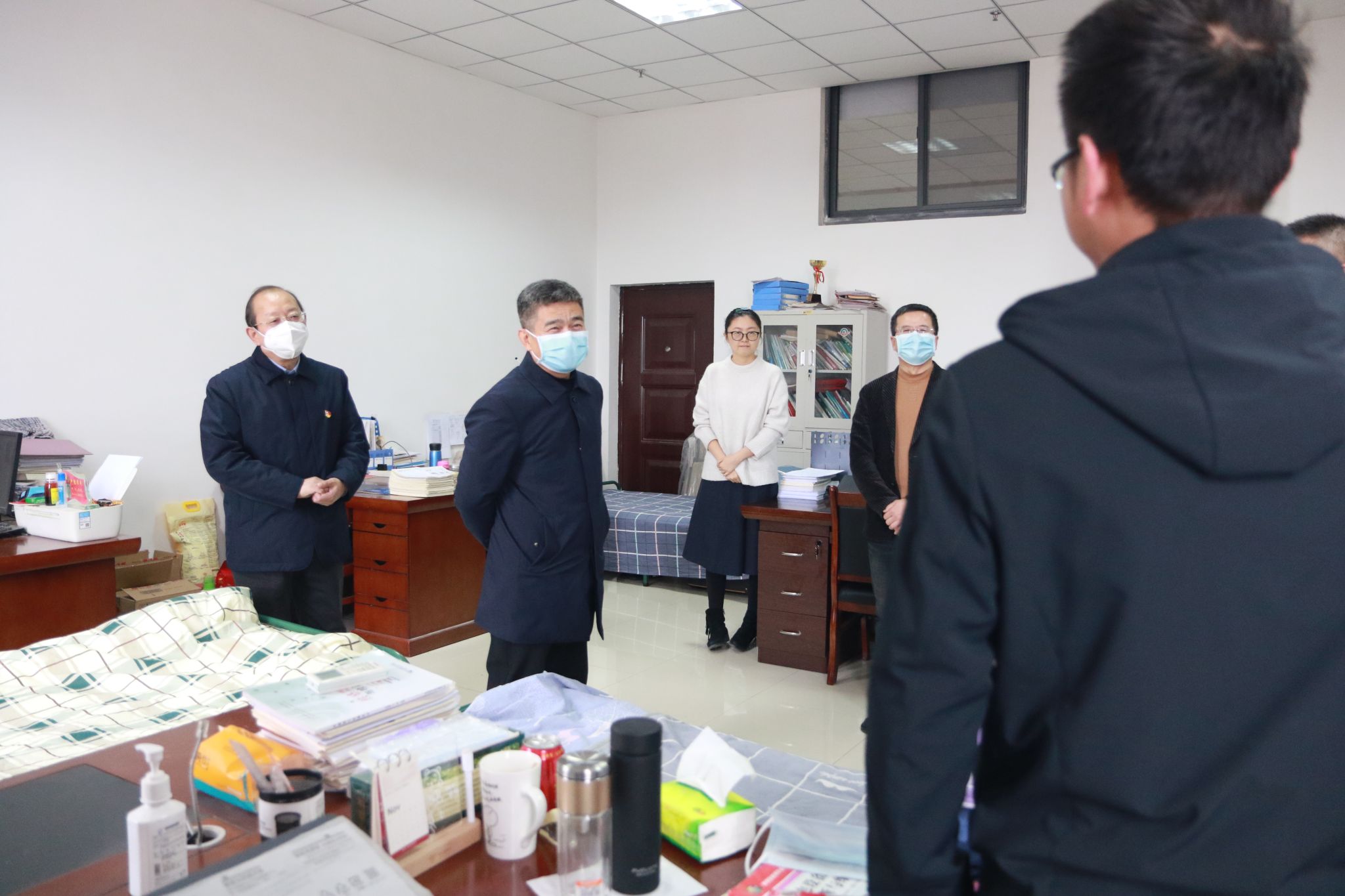 为切实做好新冠肺炎疫情防控工作,鼓励在校师生员工在疫情期间凝心聚力,健康、安全、有序学习生活。近日,党委书记施利民,院长赵春平,党委副书记、纪委书记邓轩,党委副书记任治军,副院长安学武、副院长熊奇等学院领导深入学生宿舍,了解校园严格管理期间学生的学习和生活情况,来到教职工办公室,向驻守教职工致以亲切问候。