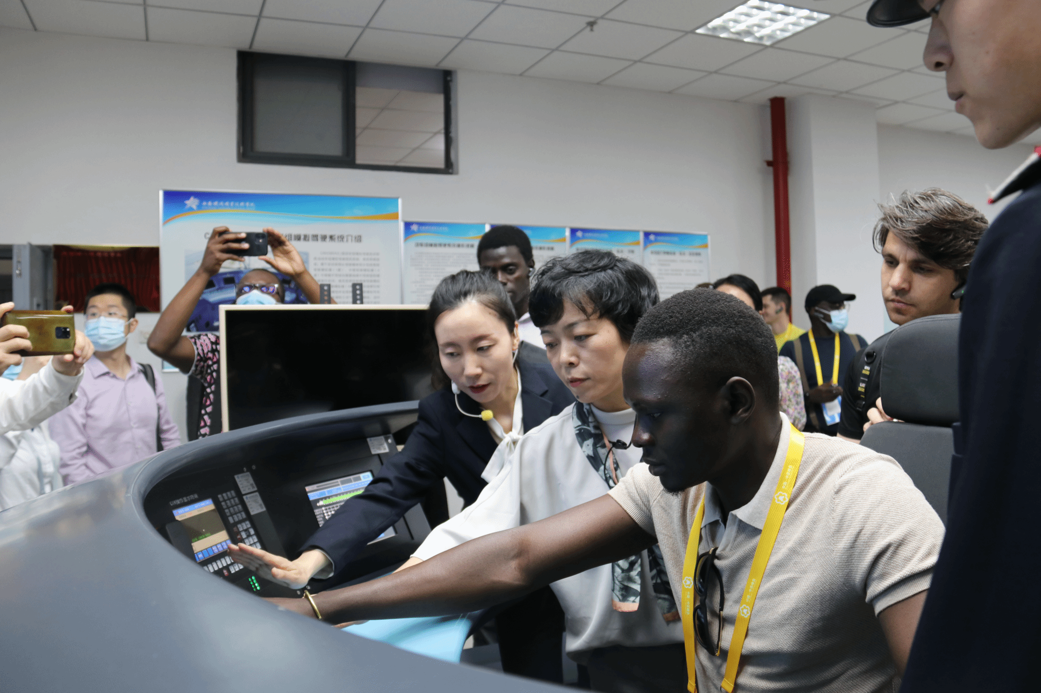 外国记者被“和谐号CRH380AL型动车组”的模拟驾驶室所吸引,纷纷走进模拟驾驶室,体验驾驶中国高铁。在磁浮列车实训室、城市地铁实训系统、复兴号列车模拟驾驶实训室,大家对我国轨道交通的领先技术及贝博官网先进完备交互式的实训设备发出由衷赞叹。