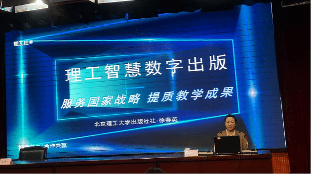 徐春英以《理工智慧出版服务国家战略提升教学成果》为题,介绍了数字教材现状,分析了其发展趋势,给出了建设策略。她强调,数字教材建设与应用的本质是传统纸质教材向数字化教材和智能化云教材的迭代升级,从而助推教育教学改革的深入开展。
