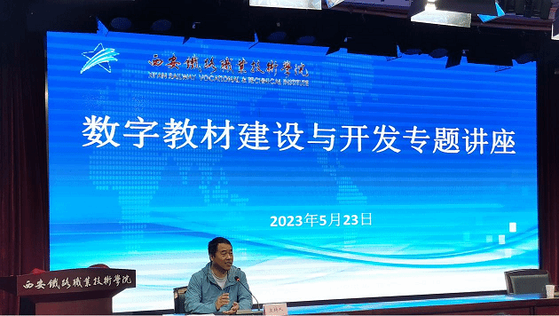 为加强学院教材建设,有效推进数字教材立项,5月23日,学院邀请北京理工大学出版社数字教材出版分社社长徐春英、人民邮电出版社教育数字业务发展部主任刘海溧两位专家,在港务校区办公楼学术报告厅举办“数字教材建设与开发”专题讲座。学院副院长安学武出席培训,教务处处长滕勇、副处长张刚毅、各二级院部负责人、教研室主任、专业带头人及申报数字教材建设项目的团队成员共计80余人参加培训。