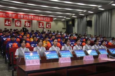 经过精心筹备,5月26日上午,2023年陕西省“中铁一局杯”轨道交通信号工职业技能竞赛在学院自强校区阶梯教室正式开幕。出席开幕式的有中铁一局集团公司总工程师吴回获,工会女工委主任武宁,人力资源部部长贾国利、副部长李培新,团委副书记陈青原,电务公司工会主席、副总经理白明涛,学院副院长安学武,校企合作处处长张治平,电子信息学院院长董奇、副院长冯国良等领导和嘉宾,以及全体裁判员、各单位领队和参赛选手、工作人员约120余人出席了开幕仪式,开幕式由贾国利主持。