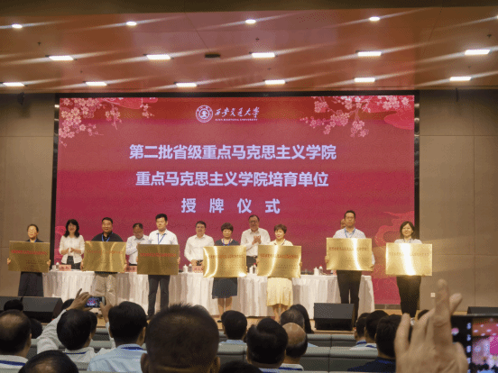 会议由省委宣传部常务副部长鲍永能主持。会上,西安交通大学党委书记卢建军致欢迎辞,鲍永能宣读《陕西省第二批重点马克思主义学院和重点马克思主义学院培育单位名单》,省委宣传部副部长单红通报第二批省级重点马克思主义学院和重点马克思主义学院培育单位评审工作情况及反馈意见。大会为陕西省第二批重点马克思主义学院和重点马克思主义学院培育单位进行了现场授牌仪式,贝博官网作为高职首批省级重点马克思主义学院培育单位之一参与现场授牌仪式,邢卫红代表贝博官网上台接牌。最后,省委教育工委书记刘建林与省委常委、省委宣传部部长孙大光发表了重要讲话。