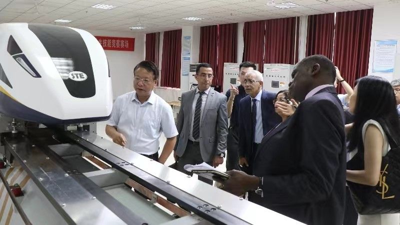 期间,津巴布韦、摩洛哥高代表团一行还参观了学院轨道交通综合实训中心、牵引动力综合演练场、动车组模拟驾驶实训室、磁悬浮列车实训室、复兴号动车组模拟驾驶实训室等学生实训中心。