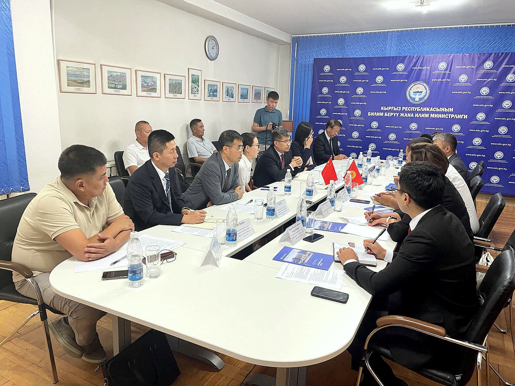8月23日,学院院长赵春平一行六人来到吉尔吉斯斯坦共和国教育科学部访问,同副部长热苏力·阿巴滋别克,高等、中等专业和研究生教育司司长纳伊马尼巴耶·阿扎马提·巴各达托维奇,初等职业教育司司长马梅罗瓦·古力努拉·杰克申巴耶芙娜,法律支持司司长伊布拉吉莫夫·别克图热·阿萨特别科维奇,国际合作与投资司首席专家木力扎别克夫·努尔季各提·肯杰别科维奇等进行会谈。