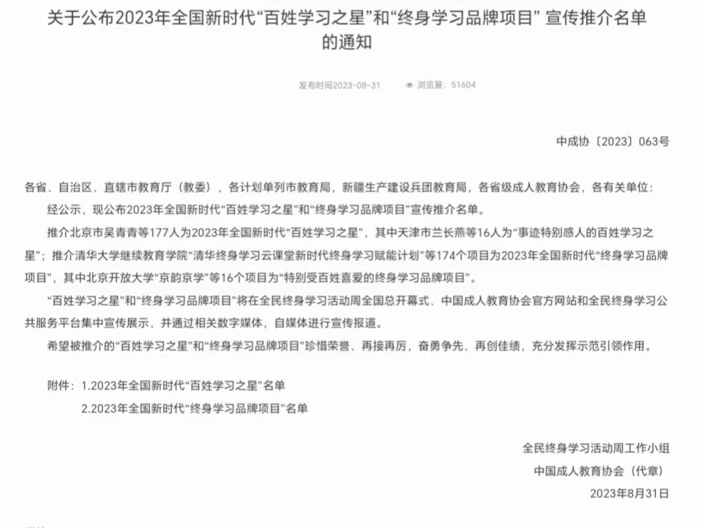学校将以此次评选为契机,认真贯彻落实党的二十大精神,充分发挥示范引领作用,继续为建设全民终身学习的学习型社会作出新的更大贡献!