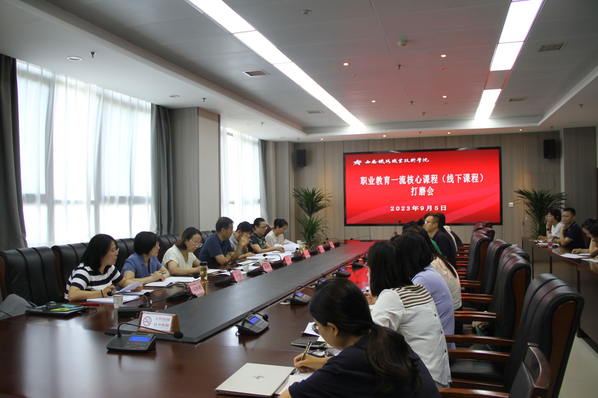 9月5日上午,学院在港务校区办公楼五楼第三会议室召开了职业教育一流核心课程(线下课程)打磨会。会议由教务处处长滕勇主持,校内专家组和各课程负责人及成员共计40余人参会。