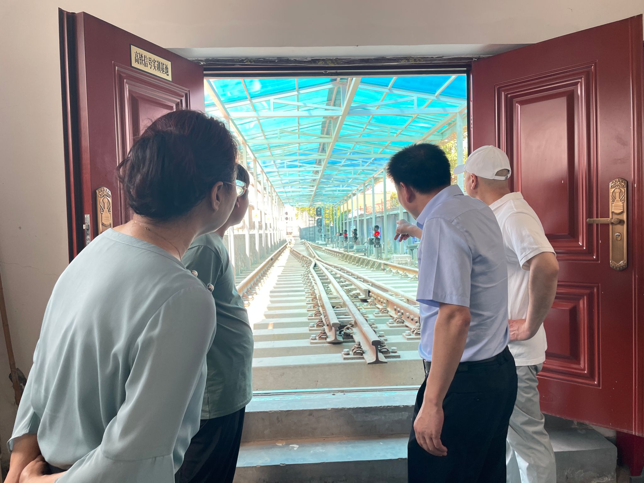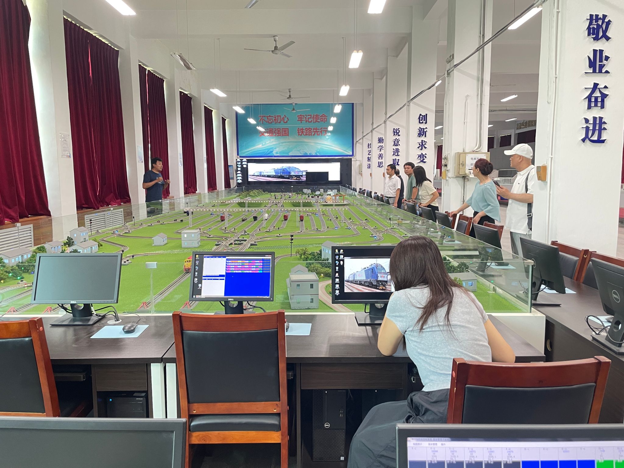 冯国良教授汇报了“高铁信号综合维修职业创意体验基地”的功能,让市民和学生在基地里浸润铁路文化、传承铁路精神、体验实战氛围、培育劳动素养和技能,现场对相关的综合演练场、生产性实训基地、模拟生产性工区平台等进行了详细讲解,实验老师配合讲解现场演示了接发车进站、道岔转换等操作,给专家组人员留下了深刻印象。