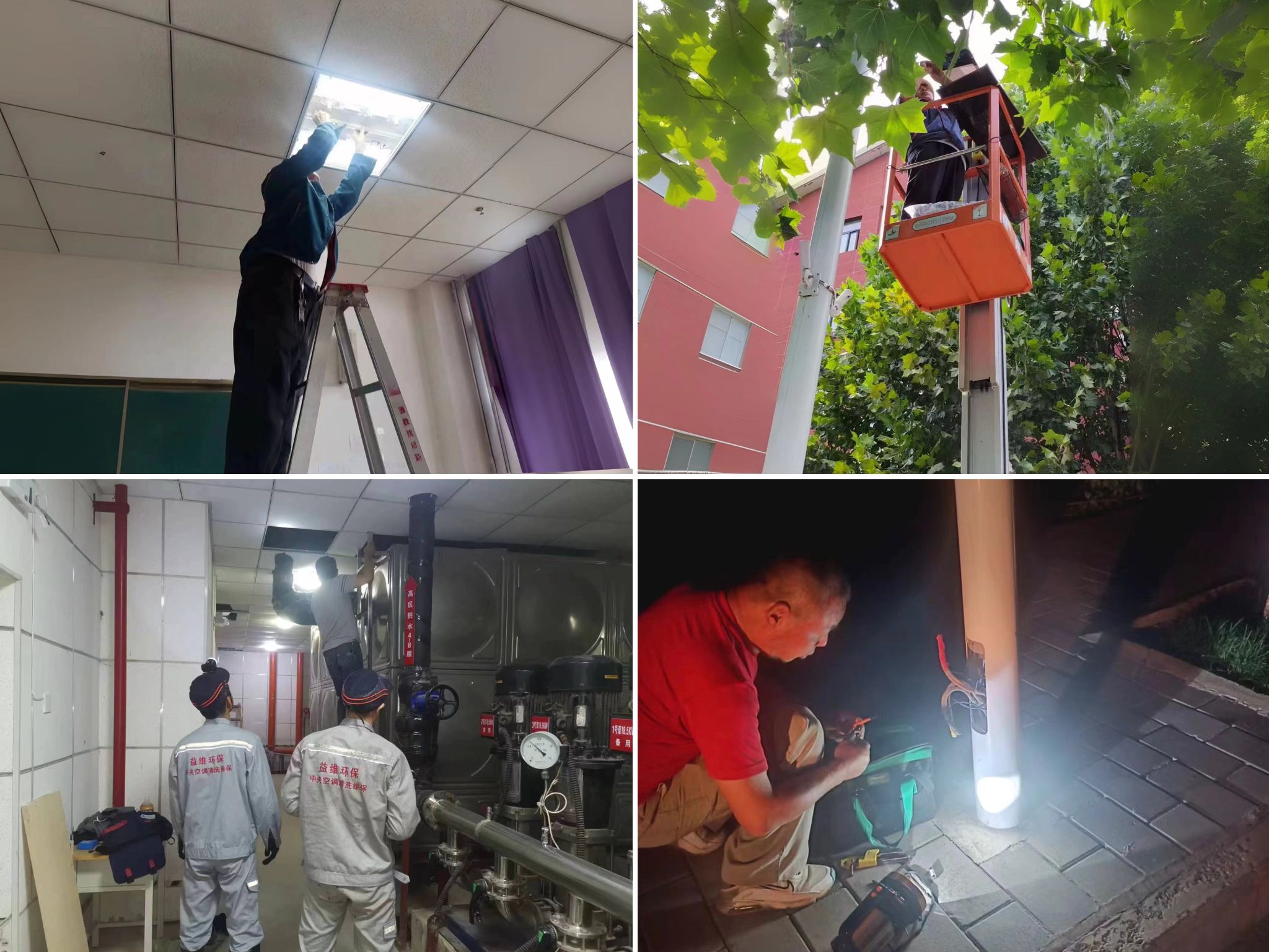 清洗维修,水电保障。开学前夕,总务科工作人员对开水房水池、2个二次供水水箱进行彻底清洁,并维修教学场所、学生公寓漏水点50余处,确保学生用水安全、放心、便捷。更换室内照明器具、路灯等90余个,更换学生公寓插座20个,保障学生用电安全。