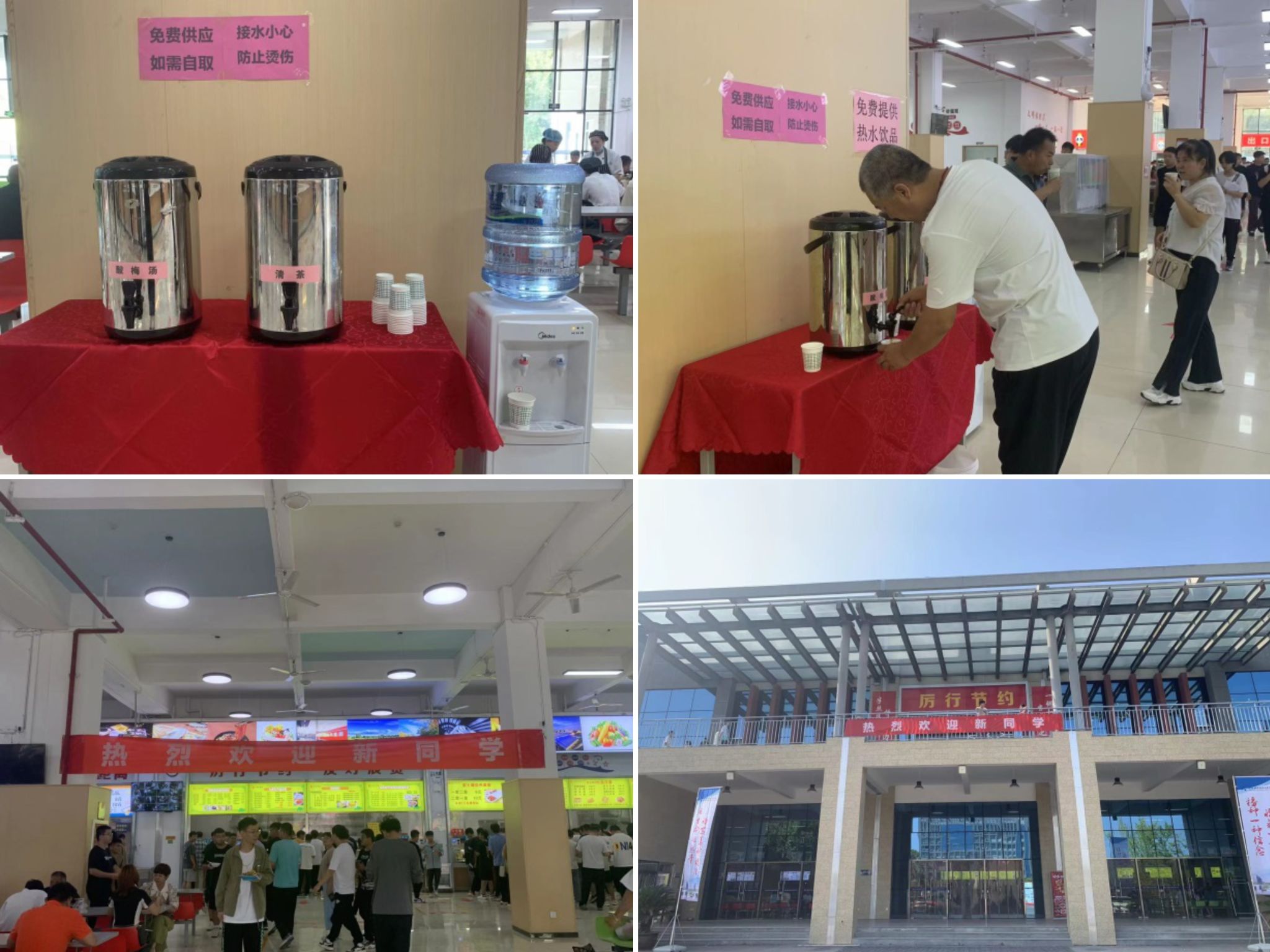 餐饮服务,贴心周到。港务校区食堂一、二楼大厅为新生及家长提供干净、舒适、整洁的休息场所,在食堂醒目位置张贴迎新横幅等宣传标语,打造浓厚迎新氛围,并在各就餐区域为到校新生及家长免费供应开水、酸梅汤、清茶等热饮。此外,加强食品安全监管,确保食品质量和安全,为学生及家长提供多样化的菜品选择。