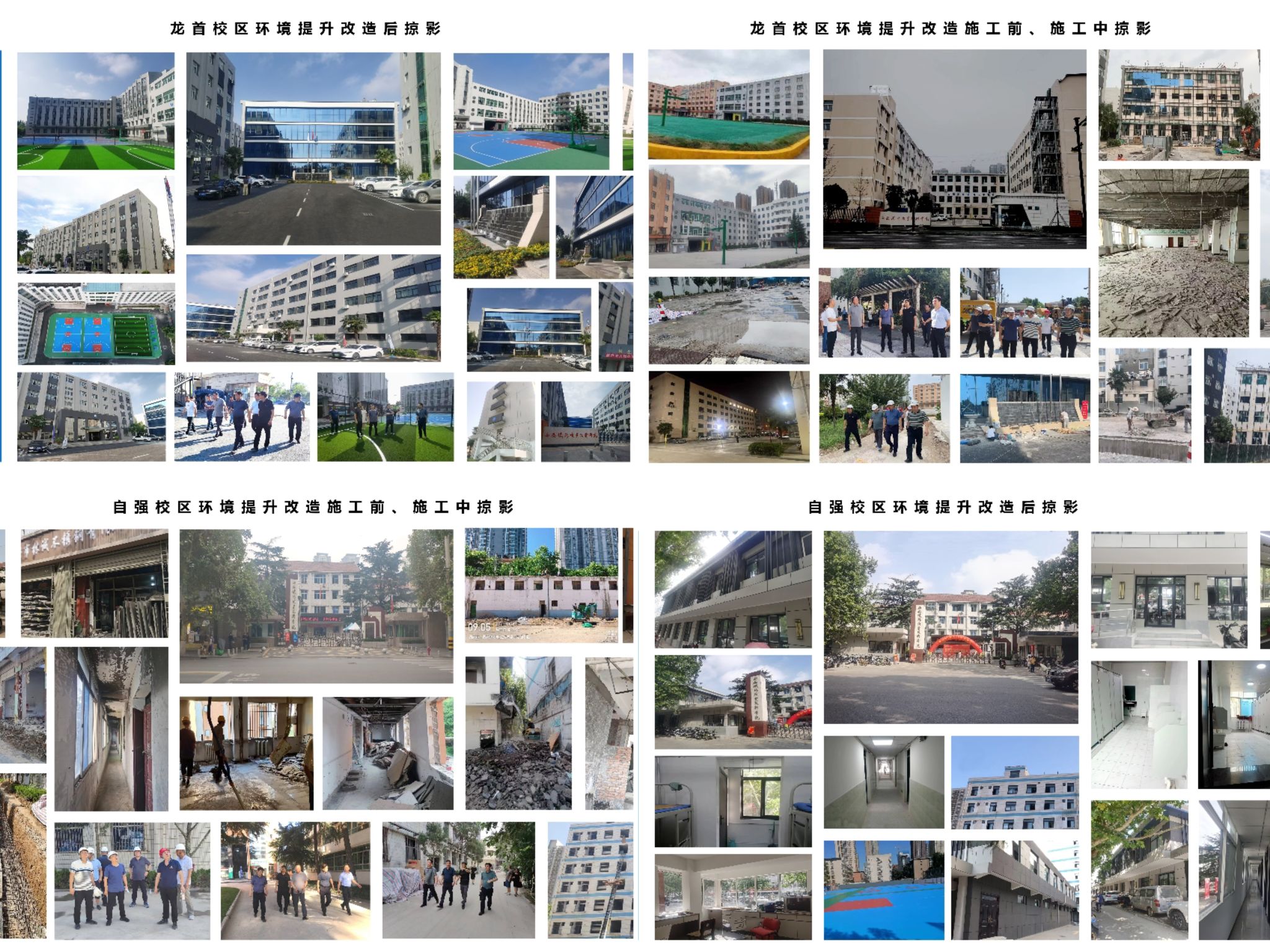 抢抓工期 优化环境。龙首校区六栋楼外立面美化、综合运动场改造、校园道路提升、校区餐厅升级,校园旧貌换新颜;自强校区学生公寓墙地门窗提升、综合运动场铺设硅PU、门面房改造、校园线缆落地、教学楼卫生间改造......校园旧貌换新颜。抢工期、保安全、重质量,冒酷暑、顶风雨、奋战40天,将学院宏伟发展蓝图转化为“施工图”和“实景图”,在新学期来临之际向师生和社会递交一份满意的答卷。