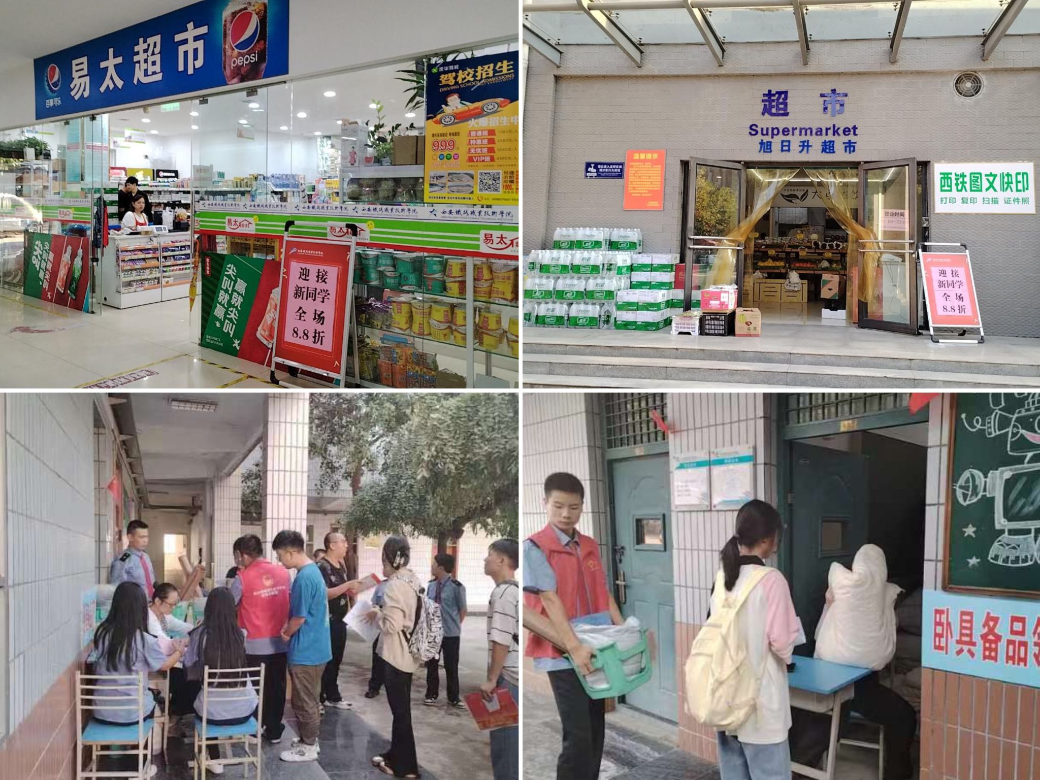 后勤保障 便捷高效。为创造更加整洁、优美的校园环境,给新生留下美好的校园初印象,房产物业科预先对花箱花卉进行更换,对校园进行大扫除,墙面冲洗,在迎新现场分区域设置流动保洁组,保持现场整洁卫生。此外,提前召开港务校区超市、浴池、理发室负责人会议,要求超市备足商品满足学生常用物品供给,协商确定新生报到当天所有商品8.8折优惠,并制作悬挂欢迎新生横幅,浴池、理发室延长营业时间,做到热情服务,尽一切能力服务好新生。提前联系服装备品厂家,完成备品前期准备工作。新生入学期间,在四个校区内设置了新生开学物资购买专区,分散购买人流,既保障了学生购物秩序,又满足了新生的购买需求。
