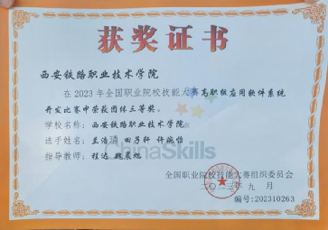 9月13日至14日,2023年全国职业院校技能大赛高职组应用软件系统开发赛项在大连市体育中心举行,来自全国各地的67支团队参赛。作为代表陕西省参赛队之一,代表队由电子信息学院的兰浩璘、田子轩和许婉怡三名同学组成,程达、魏晨旭担任指导教师。经过激烈角逐,贝博官网代表队荣获团体三等奖。