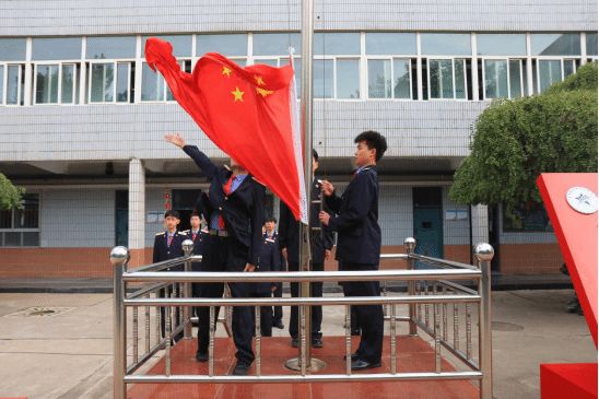 仪式在庄严的国歌声中开始,同学们穿着统一的军训服装整齐地排列在操场上,同学们斗志昂扬、士气高昂,脸上写满了庄重和期待。伴随着嘹亮的国歌,国旗被缓缓升起,全体参会人员肃立并行注目礼。