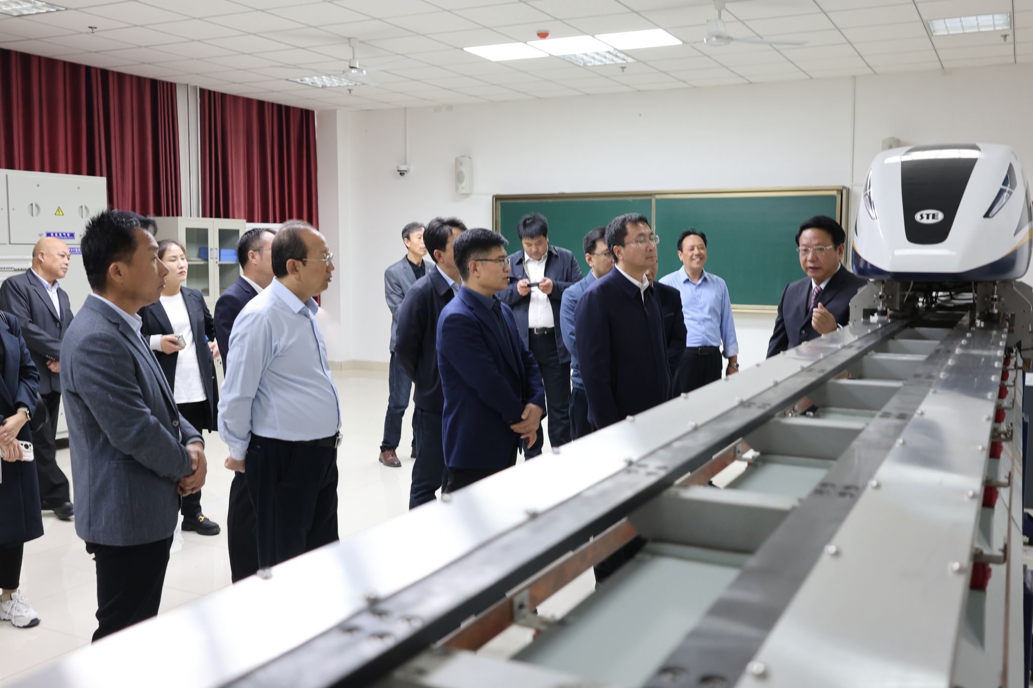 调研组一行参观了学校综合演练中心、党建文化长廊、国家级虚拟仿真实训基地、地铁模拟驾驶实训中心、高铁模拟驾驶实训中心、磁悬浮列车实训基地,实地了解了贝博官网学生管理及一站式学生社区建设等方面情况。徐毅同志一行对贝博官网特色办学、半军事化管理、思政育人成效和“双高建设”成绩等给予了高度评价,表示希望今后进一步加强双方交流,拓展校地合作平台,在职业教育中高职贯通等方面为区域经济社会发展培养更多高素质技术技能人才。