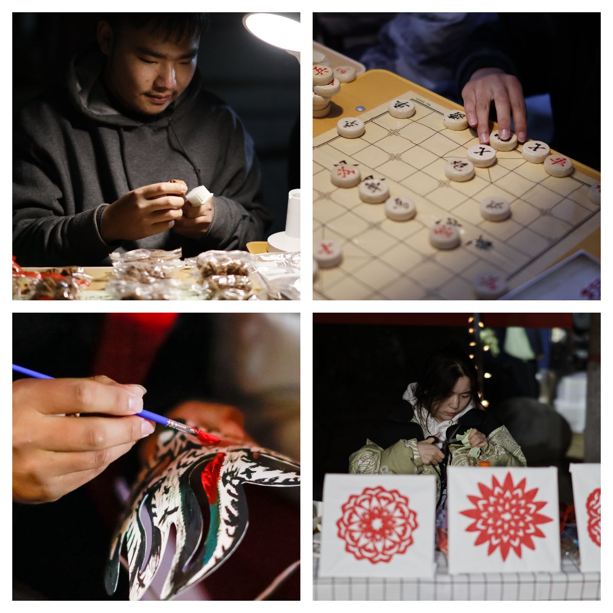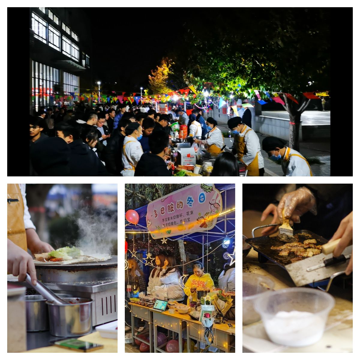 社区搭台,文化“唱戏”;落地烟火,最抚凡心。校园餐厅的大厨们走出操作间,搭建出一个个美食文化台进行现场大比拼,舌尖上的学院今晚特别暖人心。学生社区的街道上都是大大小小的摊位,摊位上琳琅满目,摆着丰富多彩的商品:令人垂涎的烤肠、温暖人心的汤圆、香气四溢的烤红薯、芋泥+奶酪+糯米的奶酪杯、品类繁多的关东煮,更有牵引动力学院传统大碗茶剧场带来的阵阵欢声笑语。“唐韵夜宴,电光烬明”--趣味大唐运动会是本次集市的亮点之一,盛唐密盒、蹴鞠、投壶、射术等多种盛唐时古人赋闲消遣的娱乐活动吸引了大批师生参与。“送君灞陵亭,灞水流浩浩”,历史上送别亲友的灞桥河畔,如今已成为师生共聚体验传统文化的灞柳社区。