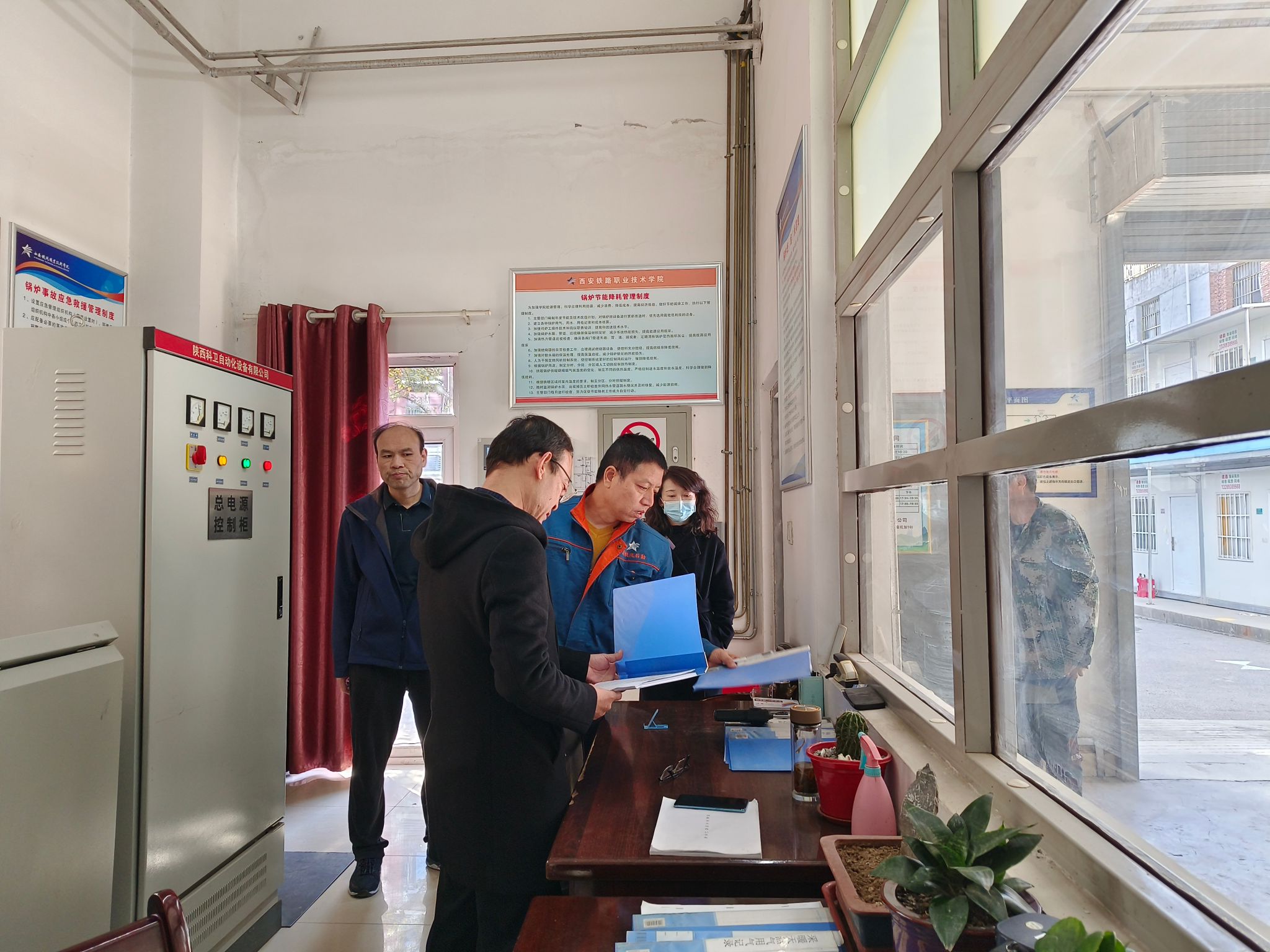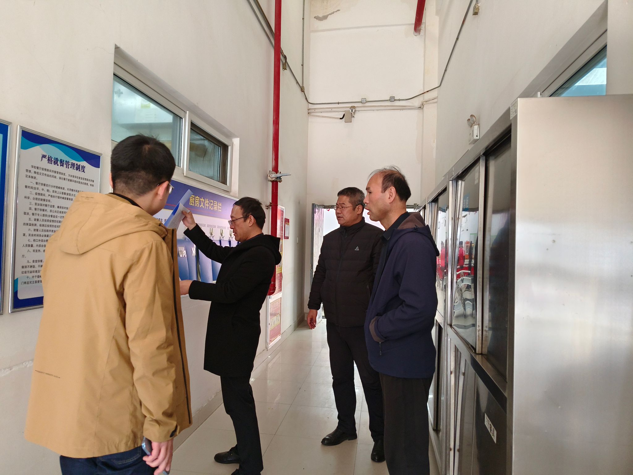 11月20日上午,后勤基建处副处长李永辉带领各科室负责人对所辖区域内安全隐患等方面又一次进行了深入排查,依次对超市,锅炉房,医务室,食堂操作间等地进行了重点检查,要求各科室要加强完善责任体系,增强风险意识,树立底线思维,不断在有效防范化解重大风险中巩固安全根基。