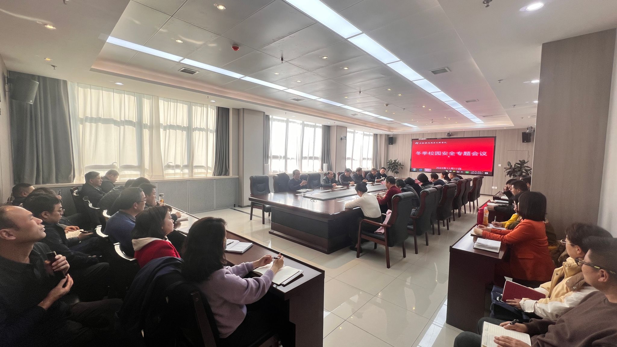 11月17日下午,学院举办冬季校园安全专题会议,学院副院长熊奇出席并主持会议,学院各有关部门科级以上干部参加会议,会议要求要提高政治站位,切实维护校园安全;强化隐患排查,坚持日常巡查、专项检查、专项整治;强化综合治理,注重部门联动,做好校园安全工作。