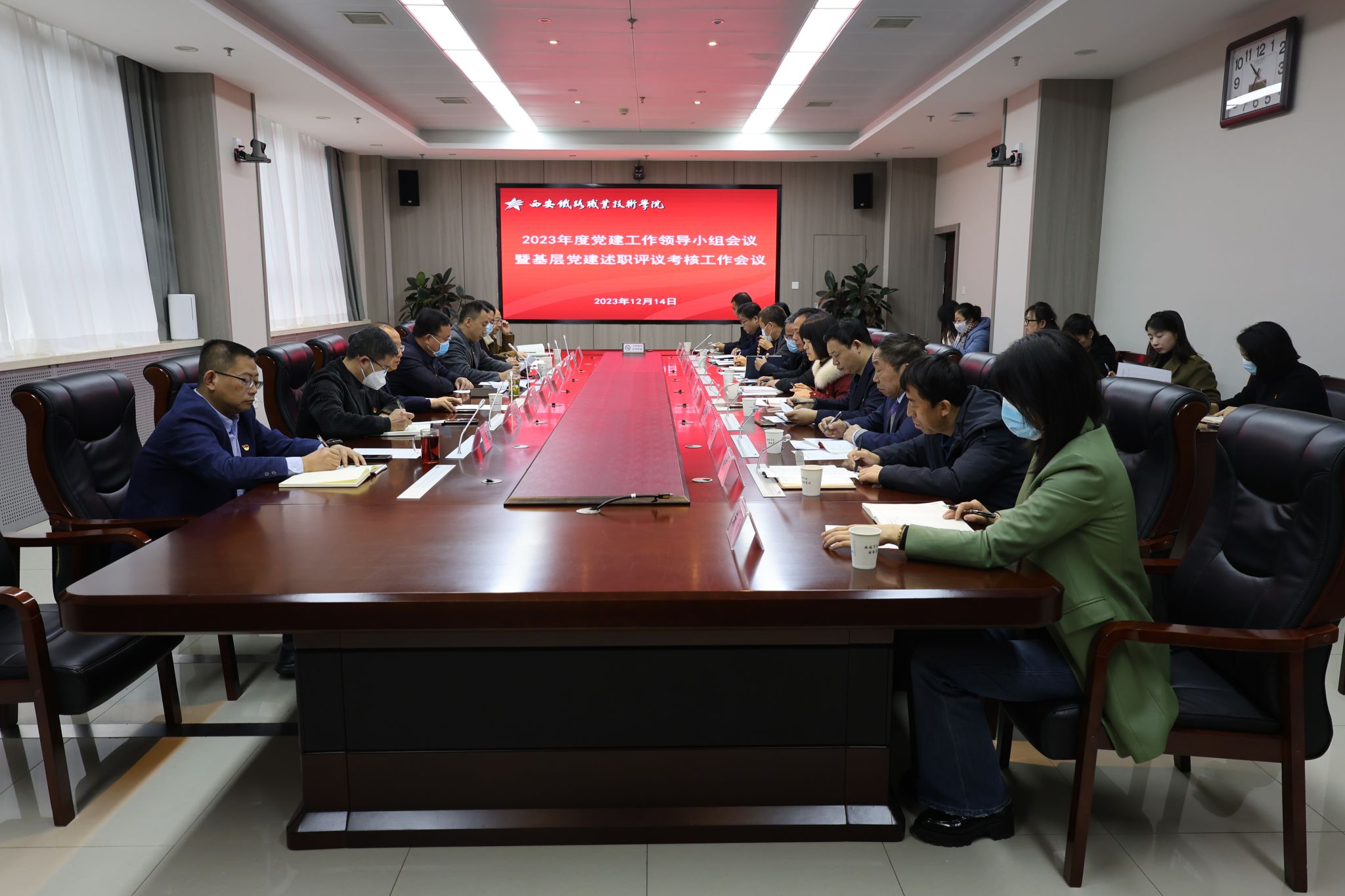 12月14日,学院召开2023年党建工作领导小组会议暨基层党建述职评议考核工作会议。党委书记施利民,党委副书记、纪委书记邓轩,党委副书记任治军出席会议,学院党委职能部门负责人、各党总支书记以及党员、群众代表共40余人参加。会议由邓轩同志主持。