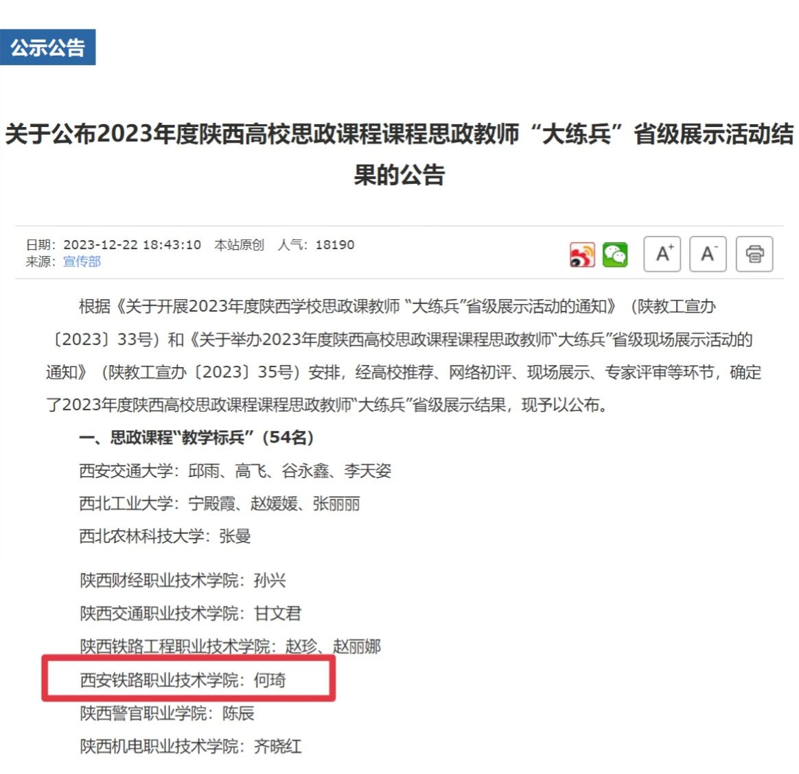 自2023年“大练兵”启动以来,贝博官网高度重视,组织全体马院教师积极参加集体备课、集体研讨、磨课等活动。经过校级初赛、省赛视频录制、专家打磨等环节,何琦、刘莉、孙世昭三位老师进入省级现场展示,从教学设计、教学内容、教学方法、教学效果、教师素养等方面,充分展示了贝博官网教师扎实的理论功底、良好的教学能力和积极向上的精神风貌。