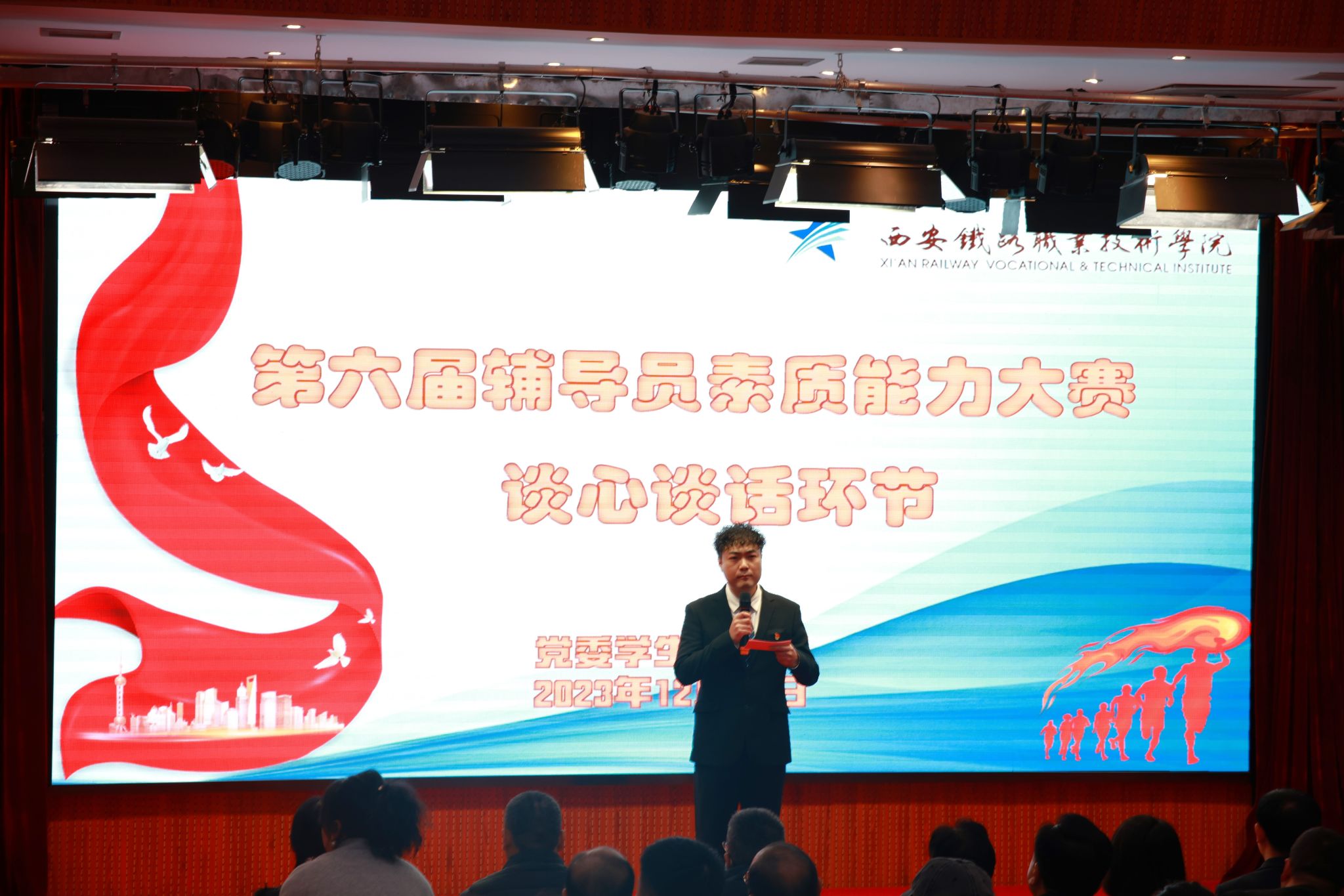 大赛自10月25日启动,共有56名35岁及以下在岗辅导员参与比赛。经过基础知识测试环节的比试,20位参赛选手成功晋级,于11月23日参与案例研讨环节的激烈角逐,最终12位选手脱颖而出,于12月25日在报告厅的舞台上“华山论剑”。