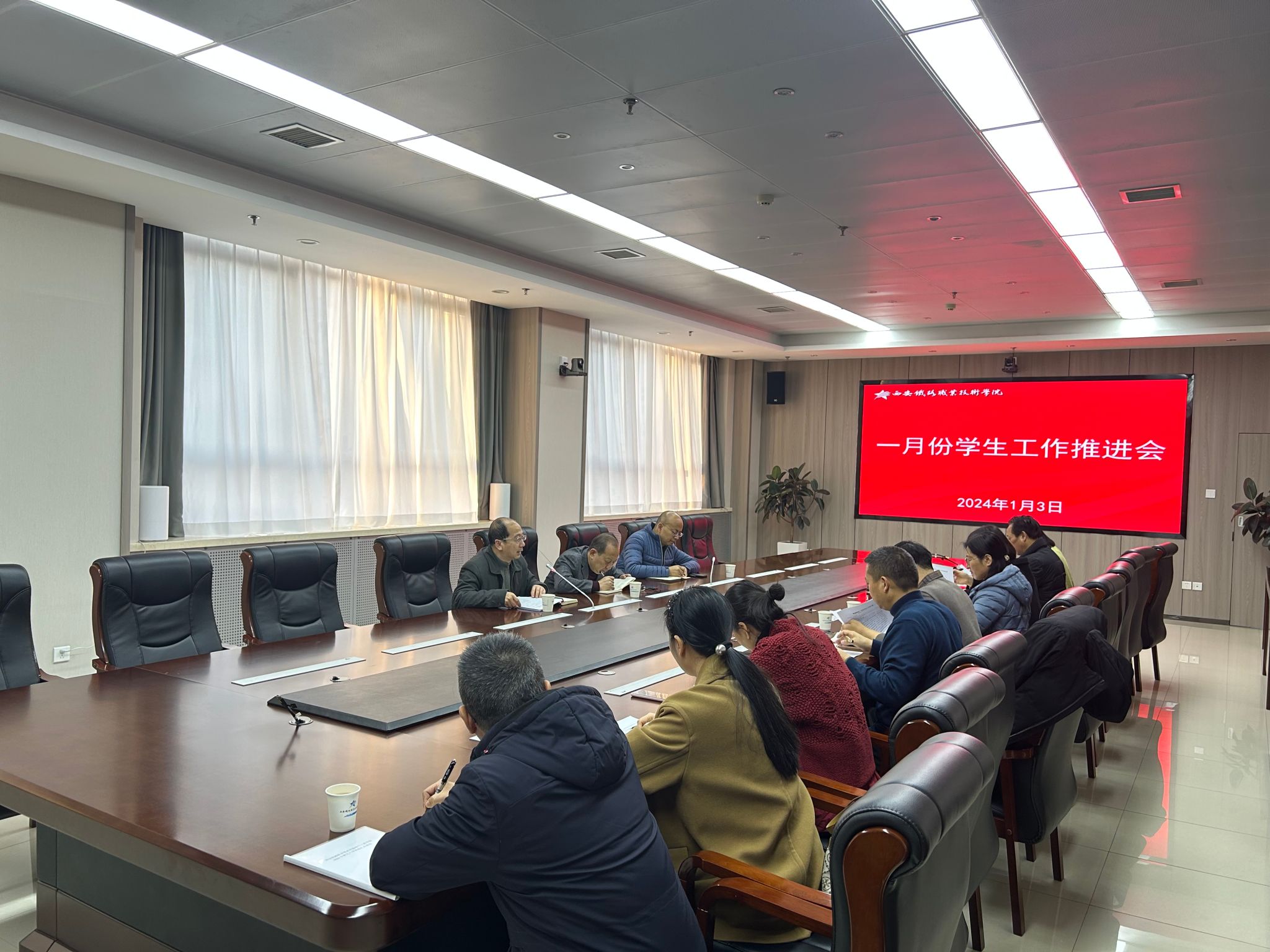 1月3日,学院在港务校区六楼第三会议室召开了一月份学生工作推进会。学院党委副书记任治军,党委学生工作部、团委全体处科级干部,各二级院(部)党总支书记、国际交通学院副院长以及各院部学工办主任参加了会议,会议由党委学生工作部部长李栋主持。