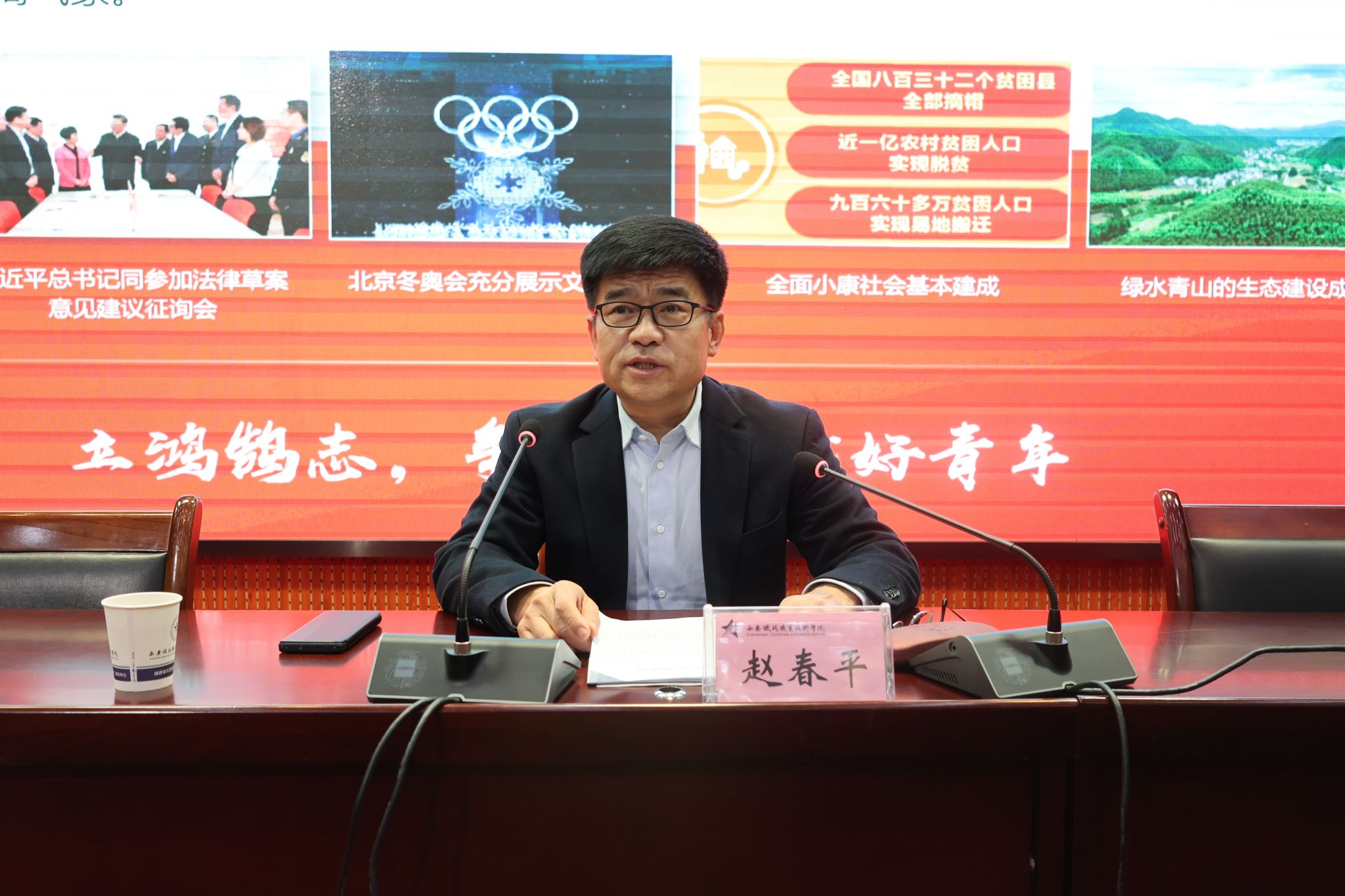 1月10日下午,学院院长赵春平在港务校区报告厅为学生讲授了一堂题为“以青春之风采,书写时代新华章”的思想政治理论课。马克思主义学院院长张刚毅主持,党政办副主任谭松和港务校区各二级学院学生代表共同参加此次活动。