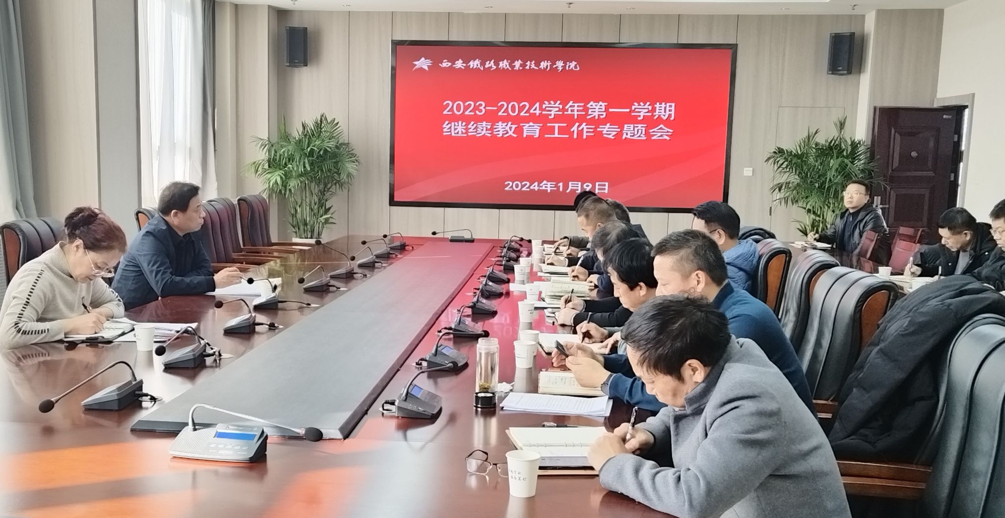 2024年1月9日,在港务校区办公室5层第三会议室,学校副院长熊奇主持召开继续教育工作专题会。各二级院部负责人等参加会议。
