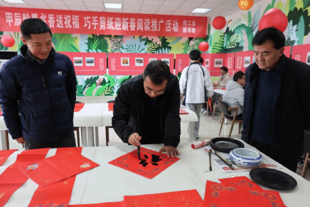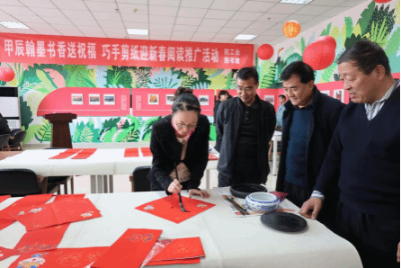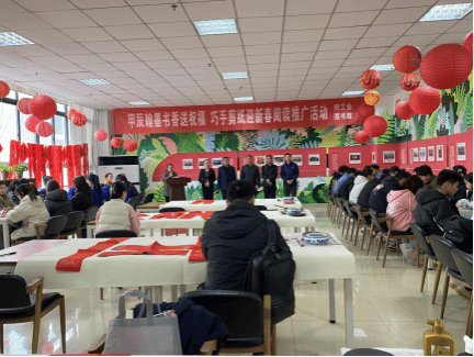 活动伊始,马建萍介绍了活动的主题内容及图书馆过去一年来的主要工作情况,并诚邀各位领导和老师同学们即兴创作,将美好的祝福通过笔墨和指尖传递给师生;赵西平为退休老教师李铭、滕勇、王树颁发了书法文化活动指导老师聘书;资深读书爱好者靳丽君用自己的亲身经历和读书感悟做了精彩的读书分享,向师生们传递了读书的快乐和收获;最后,安学武宣布活动正式开始。