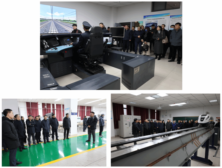 会前,各与会单位来宾在学校副院长熊奇带领下,先后参观了“轨道交通专业综合实训中心”“复兴号动车组模拟驾驶实训室”等教学实训场所。发展规划处周鹏程老师介绍了轨道交通专业综合实训中心的主要功能,引导参观学校轨道交通文化展示区、作业工艺展示区、国际交流合作情况展示区以及机械室、微机室、调度室和室外站场设备区。牵引动力学院院长李益民教授引导参观复兴号动车组模拟驾驶实训室、HXD3D型电力机车整车实训系统、牵引动力学院综合演练场、动车组模拟驾驶实训室、磁悬浮列车实训室等实训基地。贝博官网师生潜心向学的精神风貌、齐全先进的教学设施和文明优美的校园环境,给来宾留下了深刻印象。