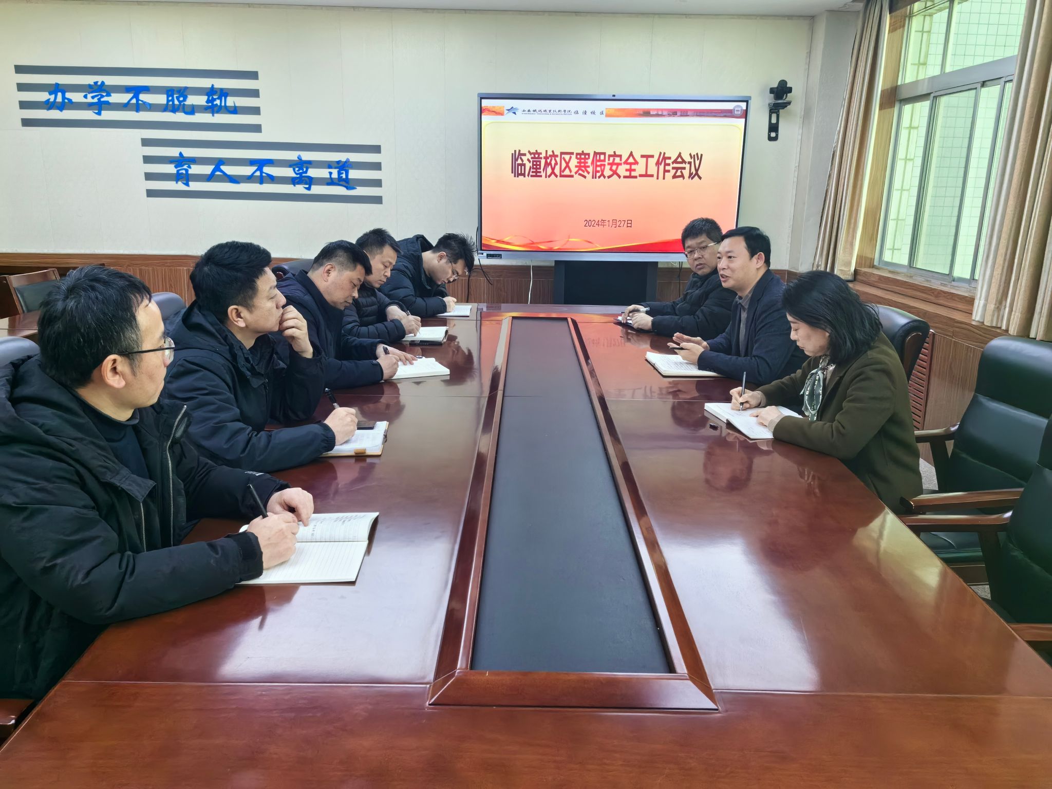 随后,临潼校区召开校区安全工作会,张军传达了全省教育系统校园安全稳定视频会精神和学院领导讲话要求。他要求各部门深刻汲取近期全国发生的多起安全事故的惨痛教训,做好三方面工作:一是加强留校学生管理。学工办、教务科要认真做好2+1学生和校区留校学生宿舍安全管理,在2月2日前全部离校,做到教室、实训室、宿舍等离人断电。二是严格落实假期值班制度。综合办要督导值班人员落实寒假值守责任,认真巡查校园各个区域,拍照留痕,进行工作日报,及时统计并上报在校人员情况。三是全面开展安全大排查大整治。总务、伙食、保卫等部门,要加强校区水、电、气、暖、车辆、单身宿舍的安全排查,确保校区安全稳定。