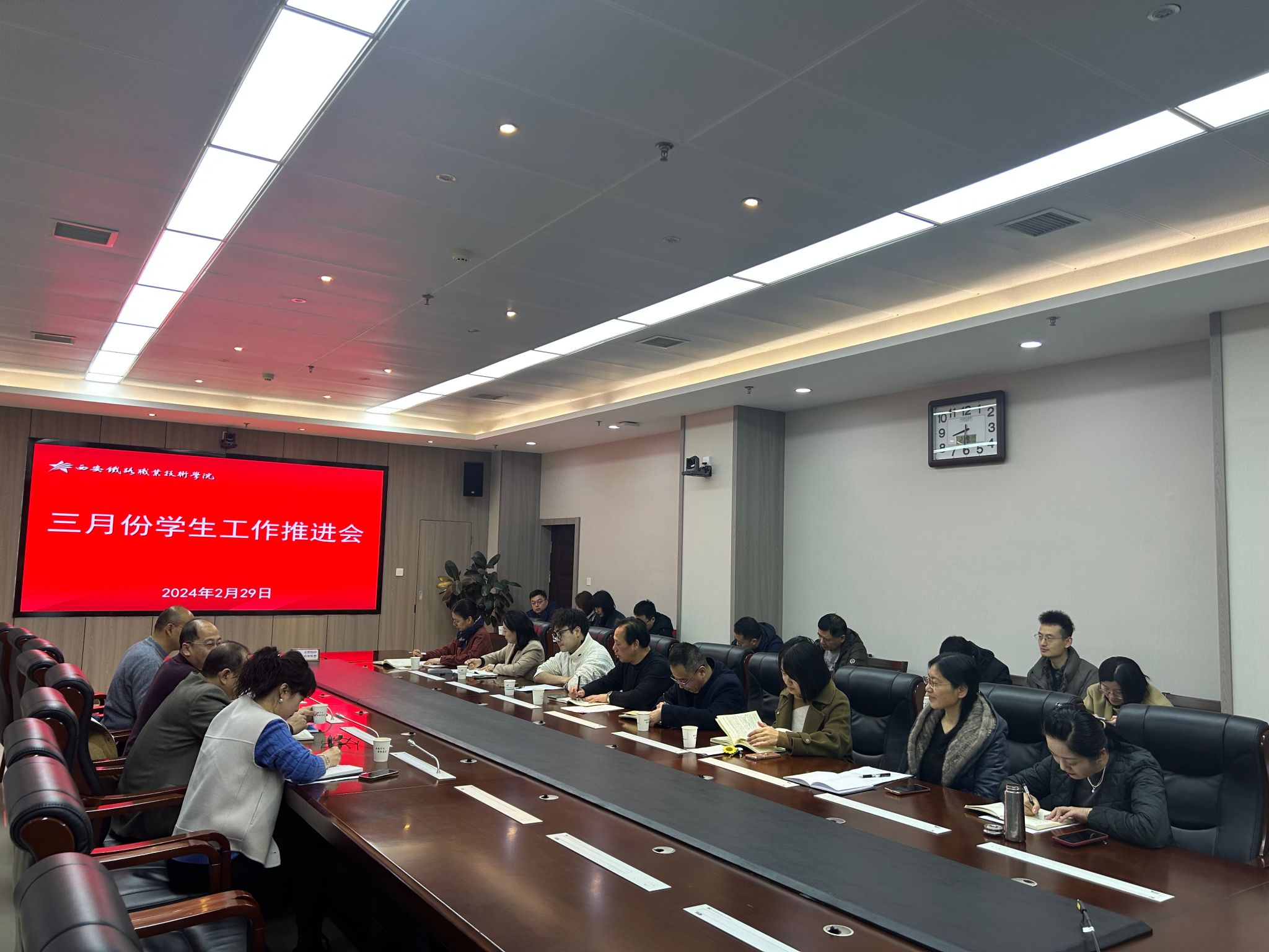 2月29日,学院在港务校区六楼第三会议室召开了三月份学生工作推进会,学院党委副书记任治军,党委学生工作部、团委全体处科级干部,各二级院(部)党总支书记、国际交通学院副院长、基础部副主任以及各院部学工办主任参加会议。会议由党委学生工作部部长李栋主持。