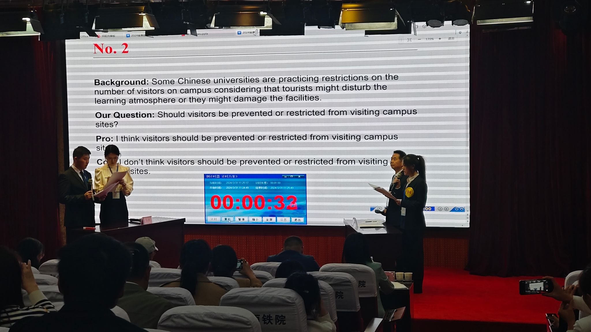 英语口语赛项旨在考查学生英语表达能力和职场交际能力以及运用语言传播中华优秀传统文化,讲好中国故事以及用英语进行交流及用英语分析问题和解决问题的综合能力。选手们在观点陈述交流和辩论过程中思维敏捷、观点鲜明、信心十足、纷纷展现出娴熟的口语表达,缜密的逻辑思维和高超的辩论技巧,给现场观摩师生留下了深刻印象。