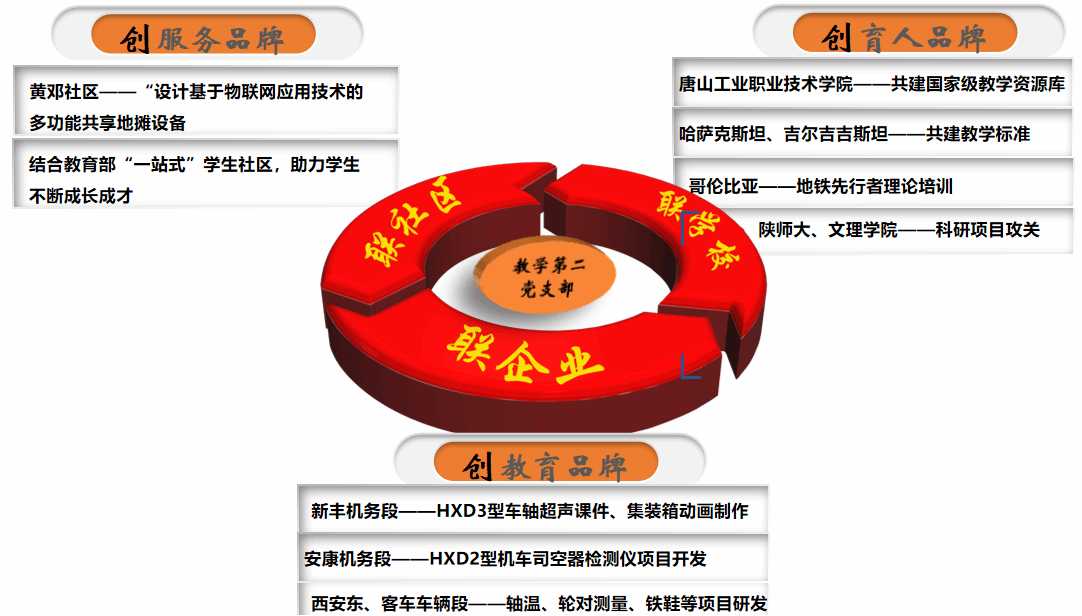 机电工程学院党总支教学第二党支部坚持“三联三创”党建工作思路,将党建与业务紧密融合,联学校,创教育品牌;联企业,创育人品牌;联社区,创服务品牌。支部积极响应国家创新创业号召,将思想引领和价值观塑造有机融入教师教学科研、学生学习生活,引领带动师生投入创新创业工作,先后成立了国家级轨道交通职业教育与技术协同创新中心、ballBET贝博BB艾弗森众创空间、机电设备检修中心、铁道车辆专业群创新工作室。支部党员带领师生积极参与企业项目开发、参与创新创业大赛。2017-2023年,学生共成立了14家创新创业公司。在各类大赛中获得省级以上奖项59项。 其中,全国行业技能竞赛中获奖1 项,“挑战杯”和“互联网+”大赛中获得国家级奖项9项,省级奖项50项,获批国家专利14项。2023年团队作品《自适应高精度数字化便携式机车司控器线路检测仪》荣获第十八届“挑战杯”全国大学生课外学术科技作品竞赛(简称“大挑 ”)主体赛全国一等奖,该奖项是陕西省高职院校在“大挑”竞赛国家级荣誉方面取得的新突破。