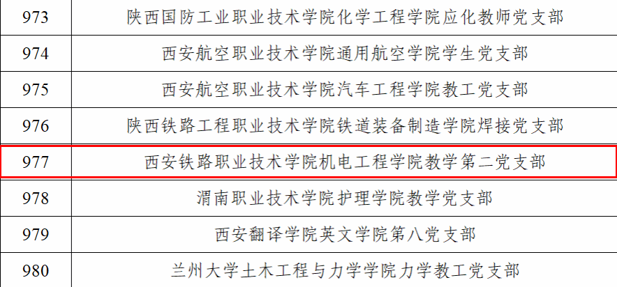 近日,教育部思想政治工作司公布了第四批新时代高校党建示范创建和质量创优工作遴选结果。经省委教育工委推荐、资格审查、专家评审、教育部党的建设和全面从严治党工作领导小组成员单位集中审议,全国共遴选产生了1001个样板支部,其中,陕西省向教育部推荐了205个党支部参加全国评选,最终入围38个全国样板党支部,陕西省高职院校入围9个,贝博官网机电工程学院党总支教学第二党支部入选第四批“全国党建工作样板支部”培育创建单位。