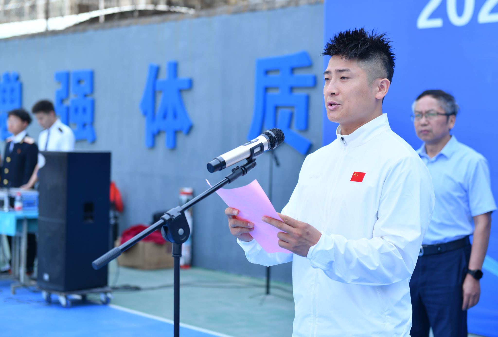 为认真落实《西安市全民健身实施计划(2021-2025年)》,聚力推进全市“八个新突破”重点工作,5月15日,由西安市莲湖区文化和旅游体育局主办、继续教育学院承办的2024年西安市莲湖区三级社会体育指导员培训在自强校区举行。区文旅体局副局长马国强讲话,副院长滕勇致辞,区文旅体局体育管理科科长张全军主持开班典礼。来自莲湖区各街办与社区的200名学员以及基础部、电子信息学院、自强综合管理处、继续教育学院负责人和相关人员参加了开班典礼。
