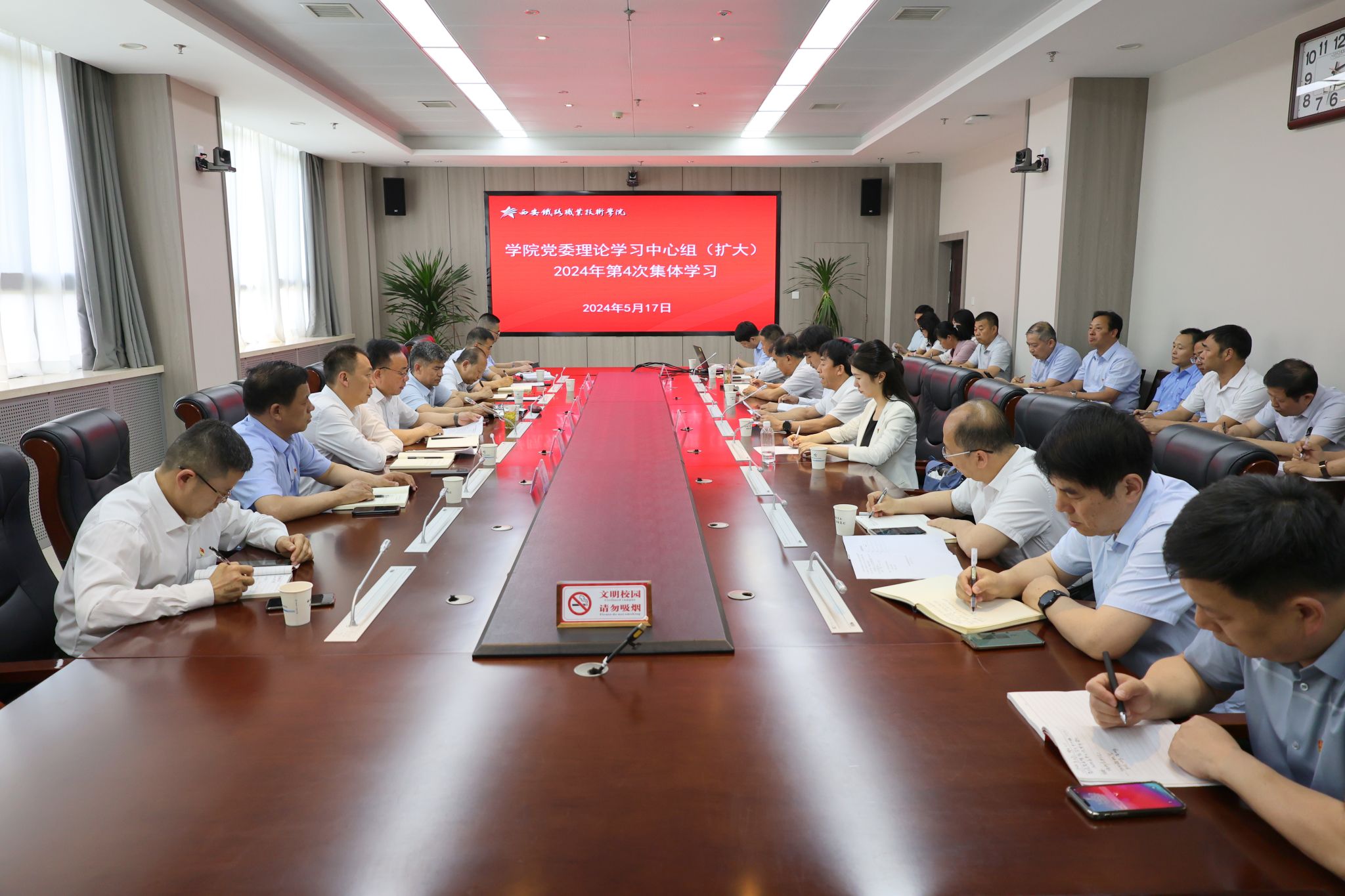 5月17日下午,学院党委理论学习中心组(扩大)在港务校区举行学习会,学院领导班子及全体处级干部参加了此次集体学习。党委书记施利民主持学习会。