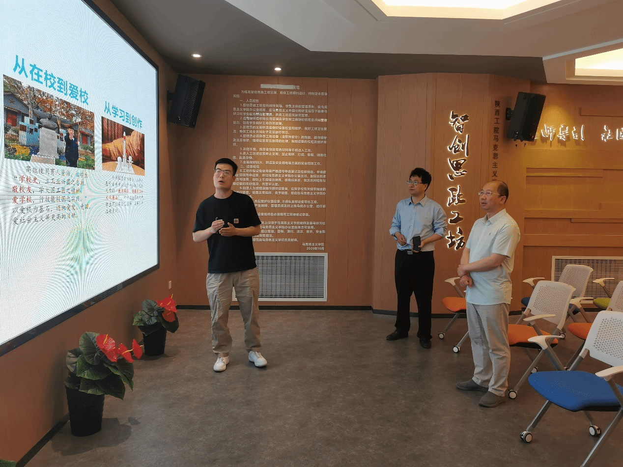 会前,在陕工院学工部部长郝军等相关工作人员的陪同下,李栋一行参观了军人服务中心、大学生心理咨询中心、智创思政工坊、大学生党团活动室等,详细了解了陕工院在三风建设、德育教育、劳动教育、资助育人、心理育人等方面工作的先进做法。