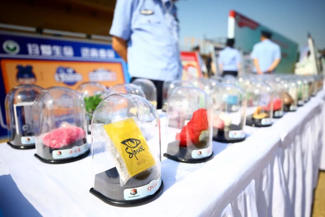 比赛结束后,活动现场设立了毒品模型展台,同学们仔细观看了各类固体、液体、气体毒品模型,还不时向展台前的警察进行咨询。在近百种不同样态的模型中,一些包装“精美”、外观“酷炫”的液体、香料、药丸等新型毒品及伪装形式都被陈列其中。