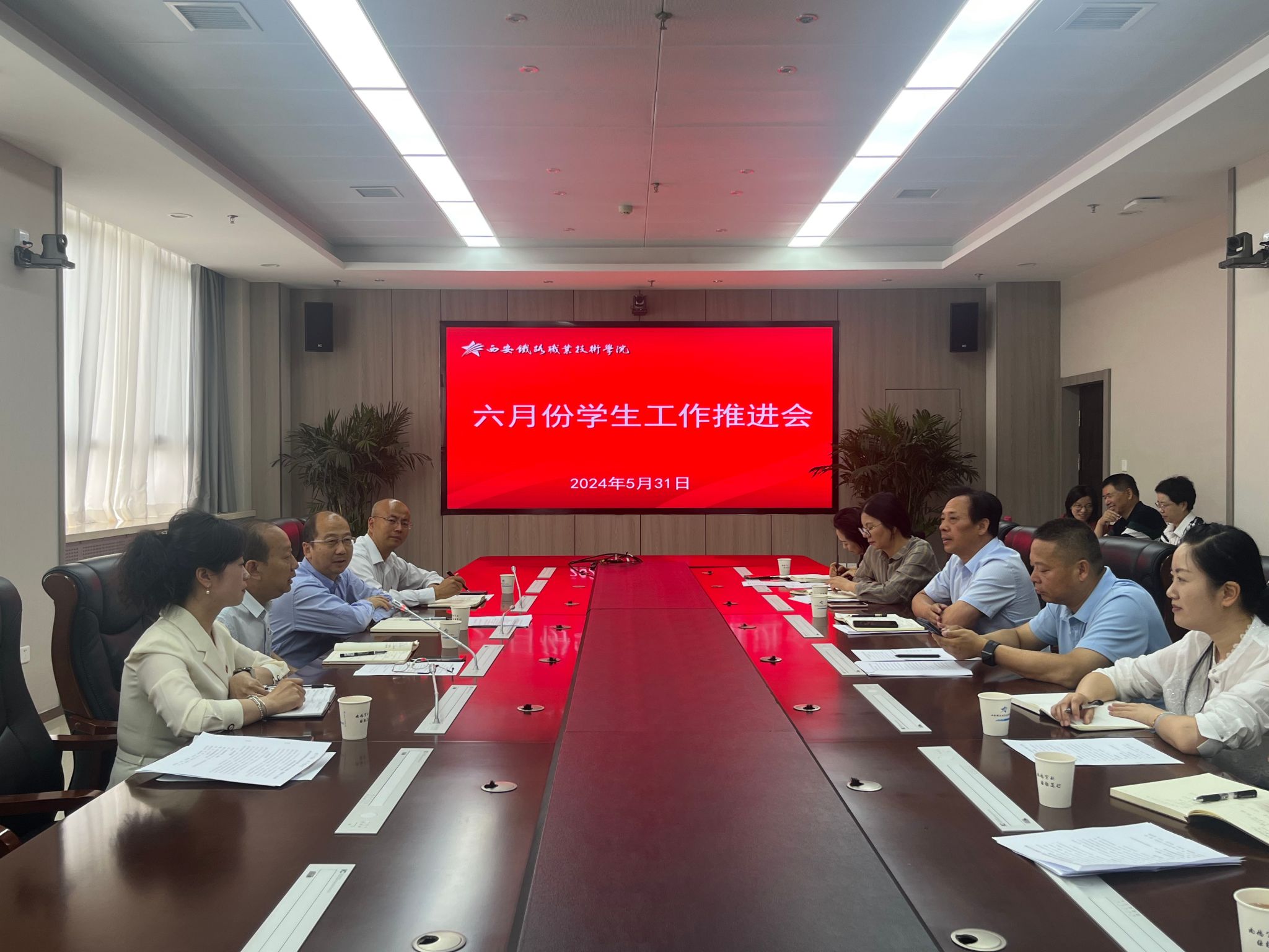 5月31日,学院在港务校区六楼第三会议室召开了六月份学生工作推进会。学院党委副书记任治军,党委学生工作部、团委全体处科级干部,各二级院部党总支书记、国际交通学院副院长、基础部副主任以及各院部学工办主任参加会议。会议由党委学生工作部部长李栋主持。