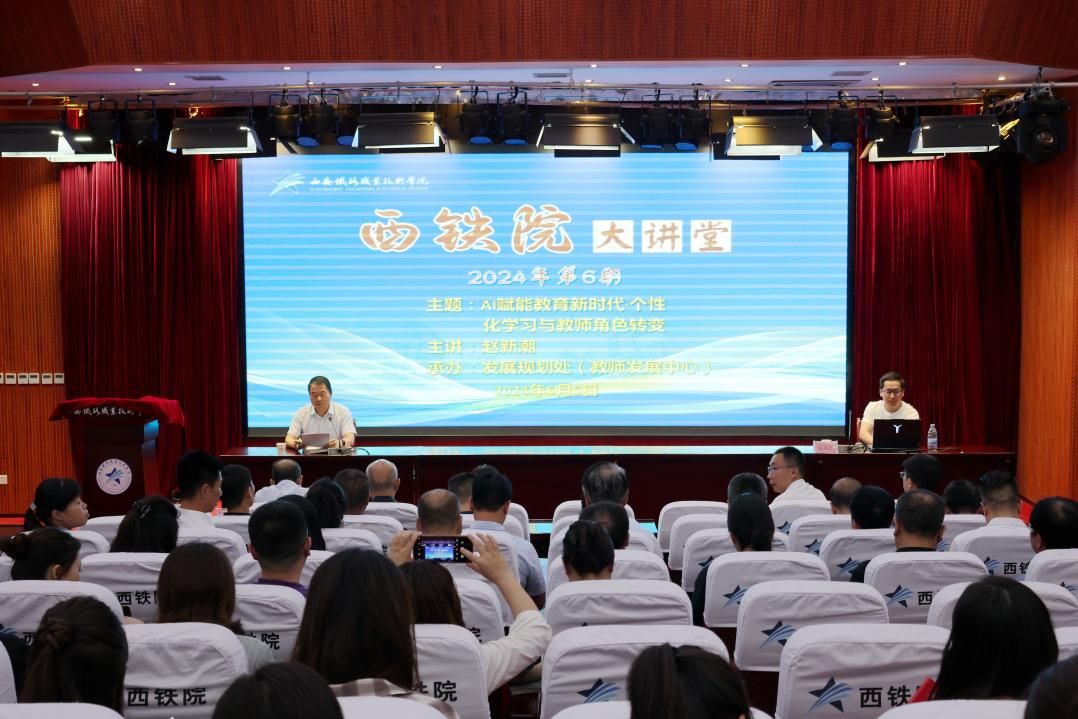 6月5日,贝博官网举办2024年第六期“西铁院大讲堂”,邀请中科大数据研究院数据科学家赵新潮来校作题为“AI赋能教育新时代--个性化学习与教师角色转变”的专题报告,报告会由副院长安学武主持。