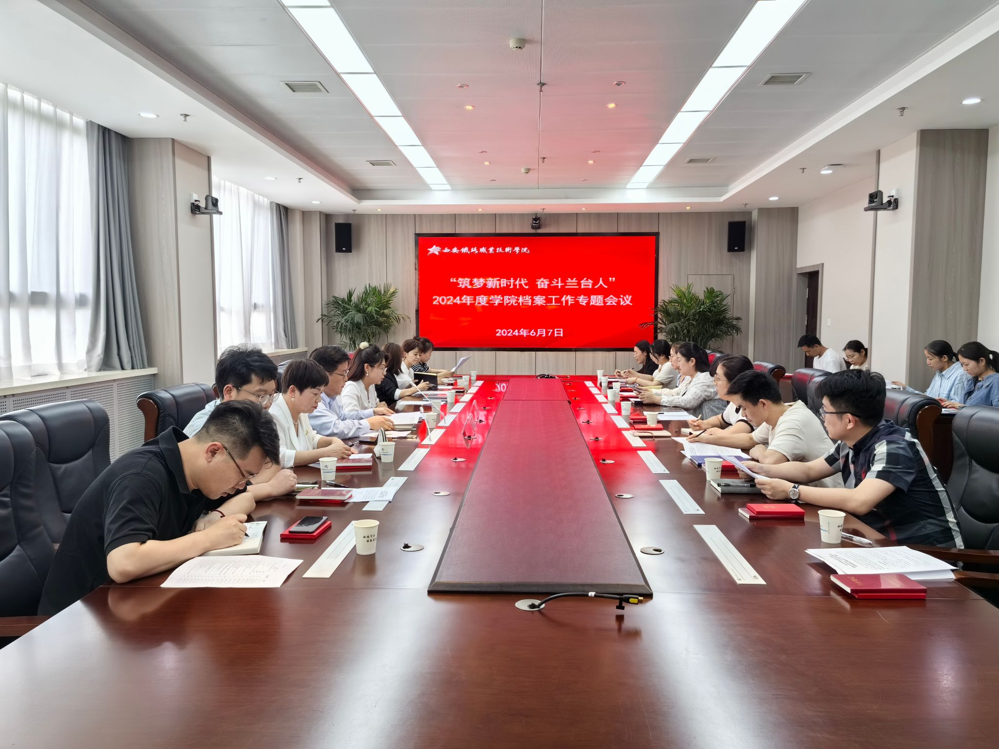 为庆祝第17个6·9国际档案日,有效发挥档案资政育人作用,更好地为学院“双高”建设和发展服务,6月7日下午,学院召开了以“筑梦新时代,奋斗兰台人”为主题的2024年度档案工作专题会议。党政办公室副主任谭松及各部门专兼职档案员参加了此次会议。