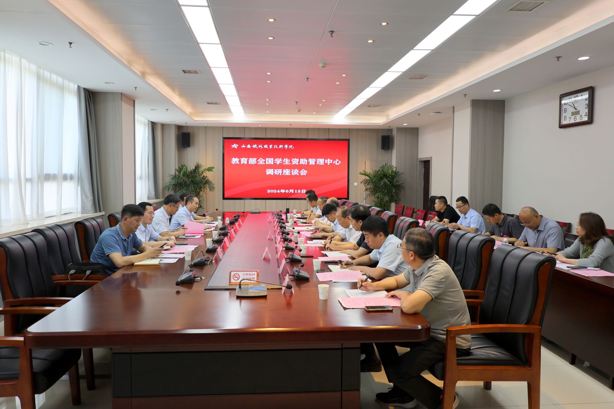 6月13日上午,教育部全国学生资助管理中心副主任涂义才、信息化处处长焦旭、省委教育工委、省教育厅总会计师刘宏恩、省教育厅学生资助事务中心主任姬建鹏等一行莅临贝博官网调研指导学生资助及信息化建设工作。西安航空职业技术学院和陕西交通职业技术学院相关负责人也应邀参加调研座谈会。